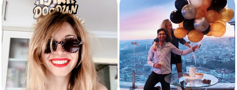 Cumartesi gecesi, Conrad Otel’in Bosphorus Lounge’ında -ki kapı girişinde düğün ile aynı ekranda gösterilen fantastik bir organizasyon ve inanılmaz bir gün batım manzarası ve limitsiz içki ile doğum günü partisine başladık. Gecenin devamı Flamme’de şişe açtırmaya uzandı.