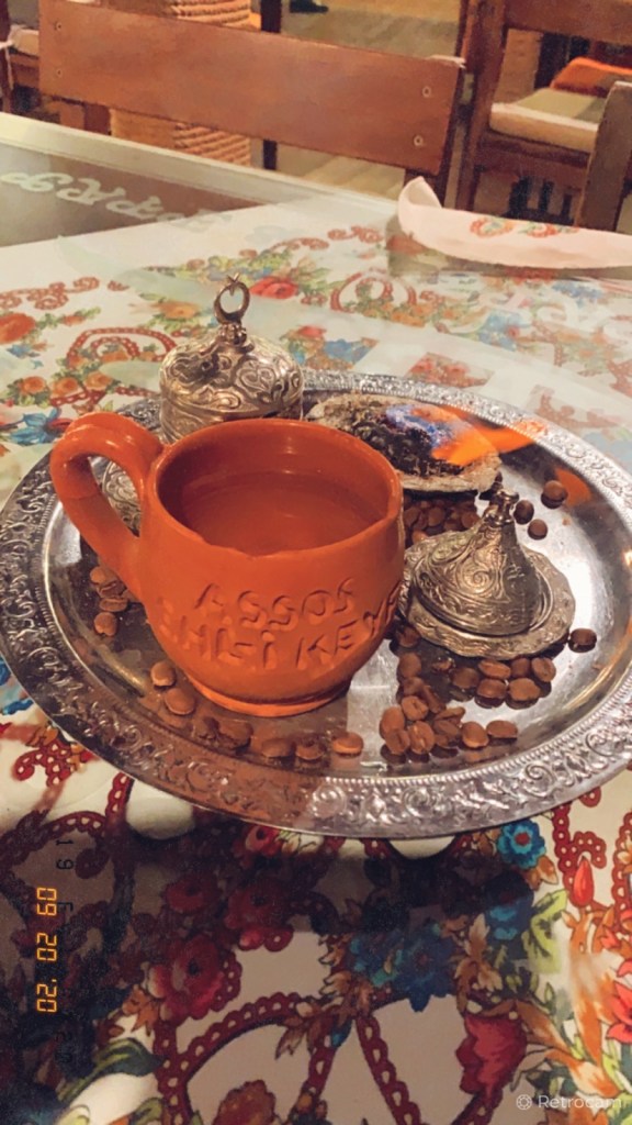 Sonra gerisin geriye Assos’a dönüyoruz. Meşhur köy Behramkale’ye çıkıyoruz. Oraya özgü yabani çilekli közde Türk Kahvesi içiyoruz. Gerçekten lezzetli.