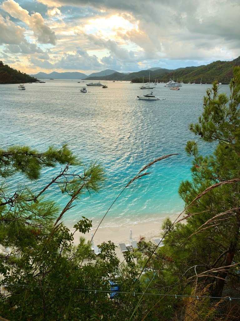 Ben menüdeki acılı, mezcalli bir kokteylden yana yapıyorum tercihimi, “Yalnız o acı bir kokteyl.” uyarısı yapan servis elemanını, “Ben de Adanalıyım.” diye cevaplamamak için kendimi zor tutuyorum. Muhteşem manzaraya karşı oldukça leziz kokteyllerimizi içerken kaptanımızdan telefon geliyor. Hava bozuyormuş, akşam yemeği için gideceğimiz koya gitmek için hemen yola çıkmamız lazımmış.