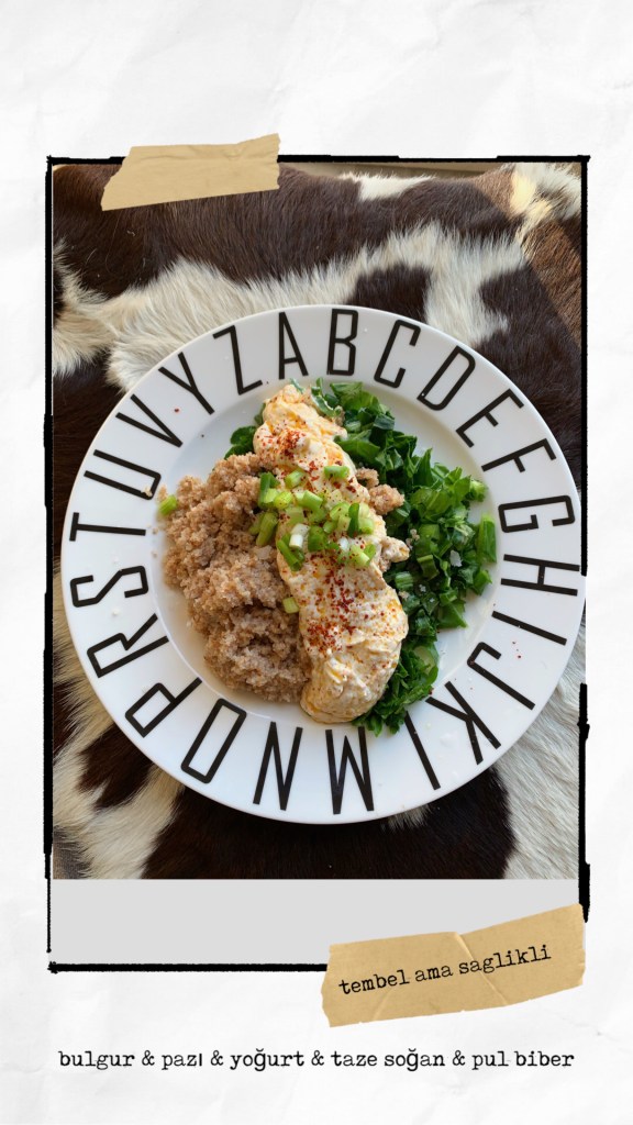 Bütün bunlar arasında çok önemli bir şeyin de tembellik yapıp vücuda saçma sapan yiyecekler sokmamak olduğunu da biliyorum artık. O yüzden elimin altında hep bolca sebze ve meyve tutuyorum. Paketli gıdalarla mümkün olduğunca mesafemi koruyorum. Vücuda sağlıksız şeyler sokmak, enerjiyi de bozuyor. Mümkün olduğunca, bana iyi gelecek şeylerle besliyorum kendimi. Tembel kızın pratik mutfağında denediklerim arasından en sevdiklerim karşınızda: