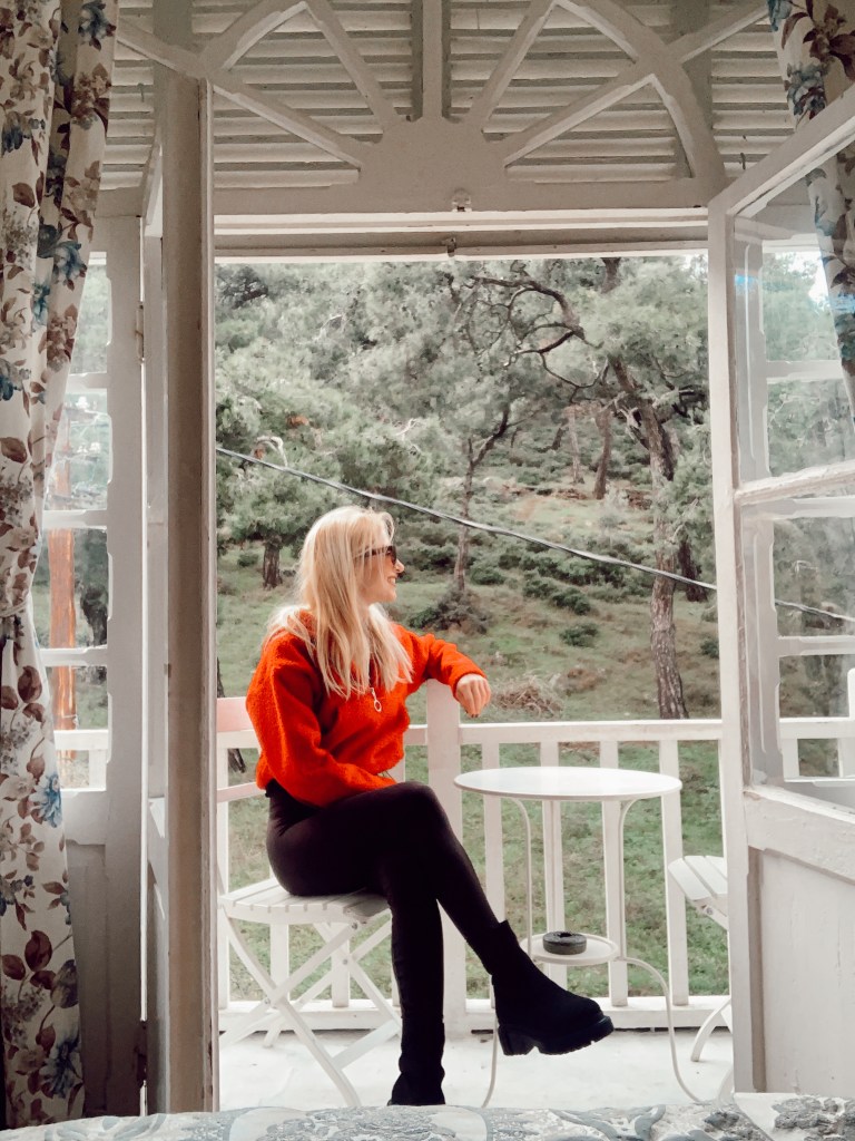 Büyükada’ya ayak basınca, önce Lale Büfe’ye gittim, bir yengen söyledim. Yengenimi yiyerek, yokuşu tırmandım ve airbnb’den kiraladığım Lale Köşk’e ulaştım. Lale Köşk, bir ormanın karşısında, deniz manzarası gören ahşap tam bir ada köşkü. Ancak herhangi bir yanlış anlaşılma olmaması adına özellikle vurgulamak istiyorum, köşkün tamamını kiralayamıyorsunuz. En alt katında, sahipleri yaşıyor. Ondan bağımsız iki ayrı katı ayrı ayrı kiralanabiliyor. Ben küçük olan ve minicik şahane bir balkonu olan en üst katı kiraladım. Linki şurada.