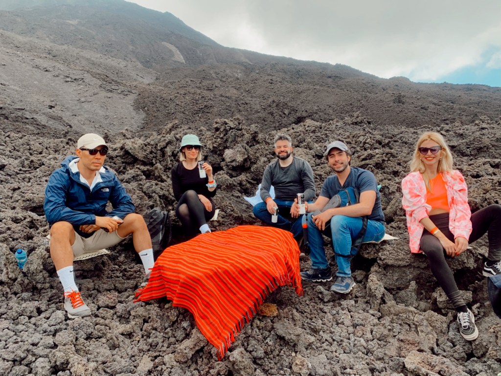 Ulaştığımız noktada bizi muazzam bir sürpriz bekliyor. Lavın ısısıyla marshmallow ve pizza pişirenler var. Kayalaşmış lavların üzerinde oturup, lavda pişmiş pizza yiyip, bira kutularımızı birbirine tokuştururken, yaşadığım anın gerçekliğini içtenlikle sorguluyorum.