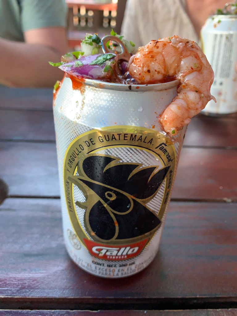 Diğerinde ise piccocita, yani cevicheli bira. Bira kutusunun yarısını boşalttıktan sonra içine ceviche sosu koyup, ağzına da bir karides konduruyorlar. Guatemala’da en sevdiğim şeylerden biri de, sürekli yeni şeyler tatmak ve hepsinin damak tadıma oldukça uygun olmasıydı.