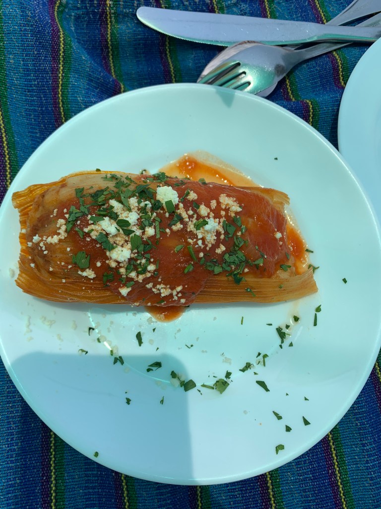 Ertesi sabah, Hotel de Don Rodrico’nun terasına kahvaltıya gidiyoruz. Muhteşem tarihi manzarası eşliğinde, mimosa ve michelada kadehlerimizle oraya özgü bir brunch yapıyoruz. Tamales, fasülye püresi, pişmiş muz…
