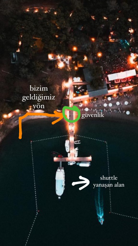 Festival alanına Göcek Marina’dan kalkan shuttle’lar arasında bir saat aralığında 2 saat boşluk olduğu için, bir gün shuttle ile gitmek yerine, festival öncesinde o yakınlarda teknesi bağlı bir arkadaşımıza bir şeyler içmeye gittik. Teknenin önündeki karaya çıktık, oradan yürüyerek festival alanına geldik. Kolumuzda bilekliklerimiz zaten vardı, geri kalan günlerde de festival alanında aşırı eğlenen herkesin çok sevdiği bir ekiptik. Bir anda bir kaos yaşandı, “Buradan giriş yapamazsınız.” dediler.
