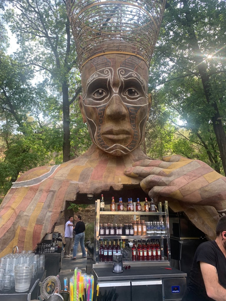 Gördüğüm anda vurulduğum, dev bir ahşap heykelden yapılmış dev bar ise mekanın kesinlikle en çarpıcı en sıra dışı detayı.