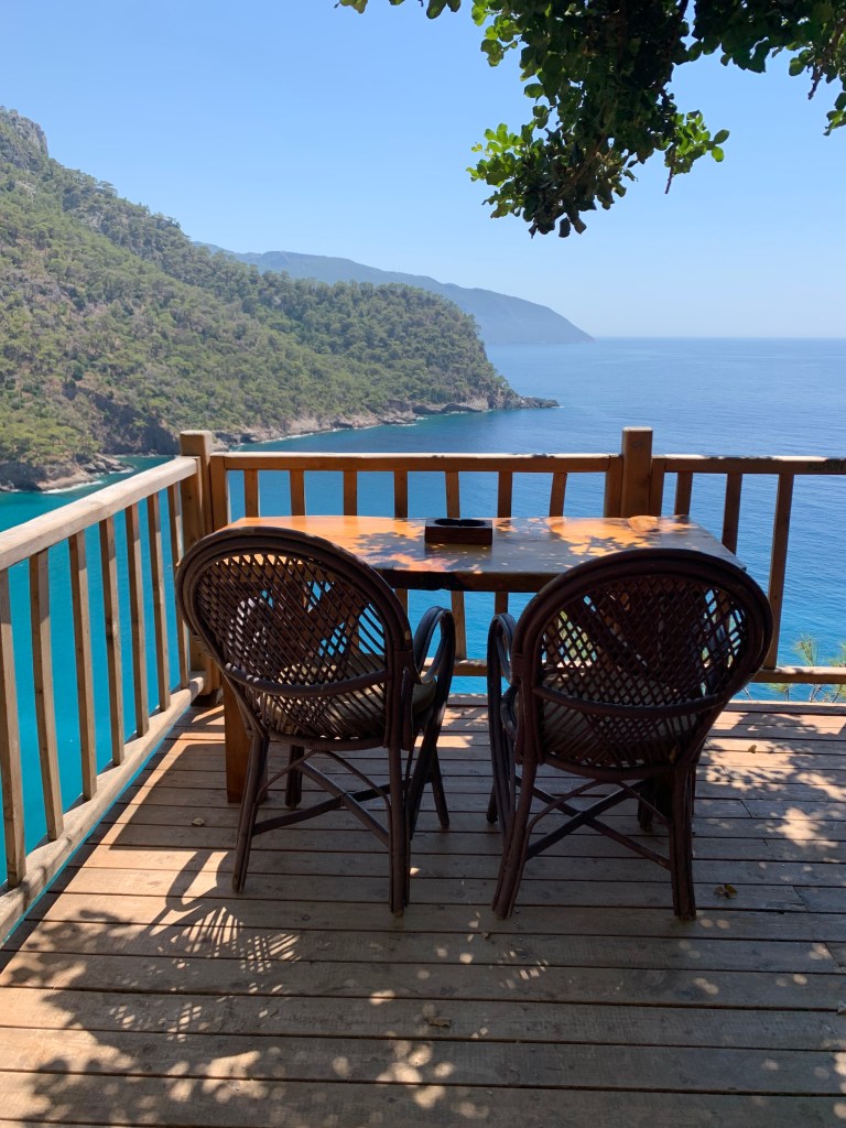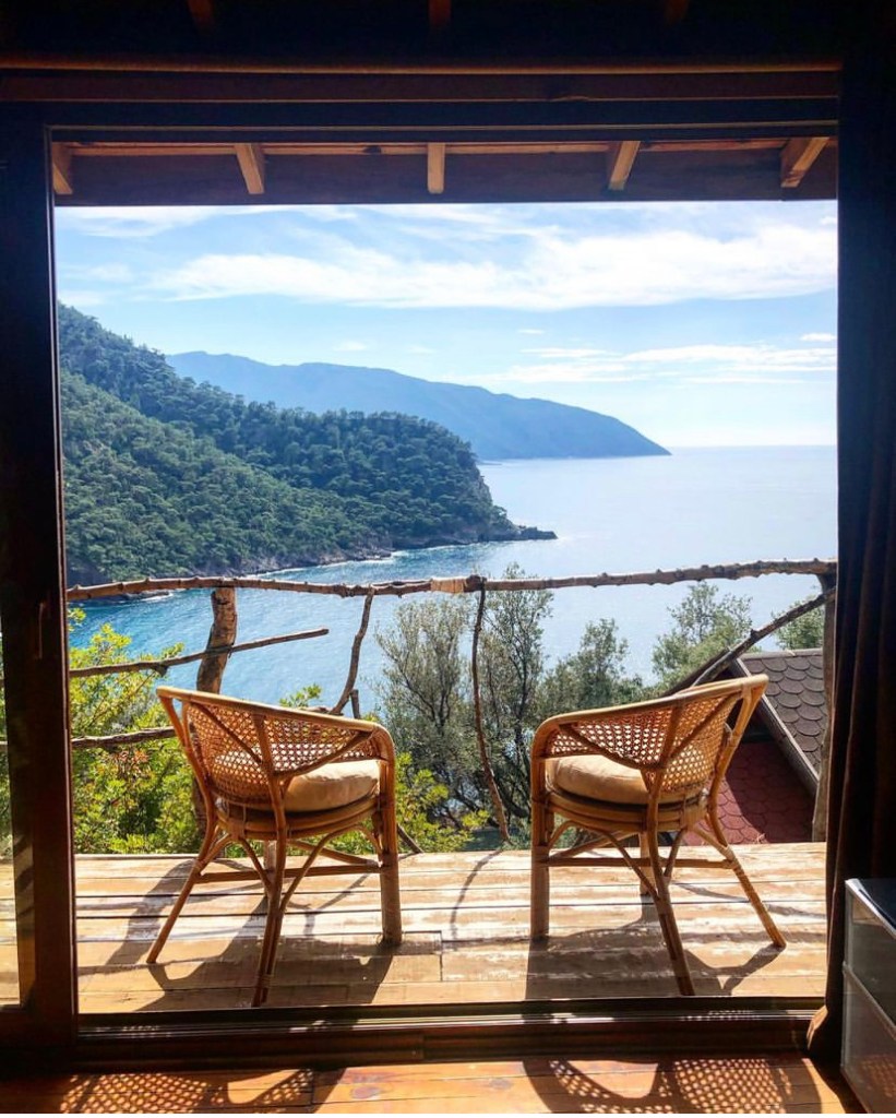 Fakat nereye gideceğimizi bilmiyorduk. Fethiye Kayaköy’ün içinde şahane bir airbnb evi beğendik, hiç bir referansı yoktu ve mesajlaşmanın akışı da hiç güven vermedi. Ölüdeniz’deki oteller arasında istediğimiz gibi bir şey bulamadık. Ya çok standart karakteristik özelliği olmayan yıldızlı otellerdi ya da inanılmaz zevksiz dekore edilmişlerdi. O sırada ne zamandır listemde olan Shambala geldi aklıma, gece yola çıkıp gitmek için biraz uzak bir noktaydı Kabak; ama sabah bizi sahile getiren taksici abiyi aradığımda gece 1:30 gibi bizi beach’ten alıp oraya götürmeyi kabul etti.