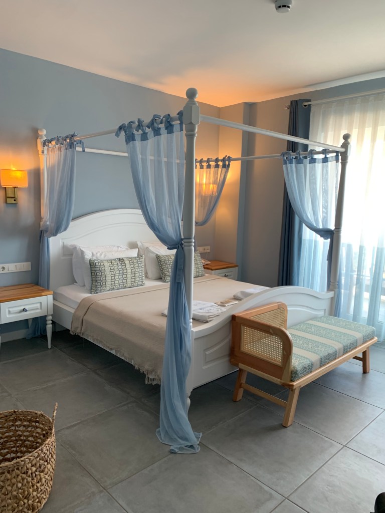 - Merkezdeki konumu ve mavi beyaz dekorasyonuna vurulup bu sefer Luvi Kaş‘ta kaldık. Oldukça lezzetli bir kahvaltı servis ettiler, odalarımız da yepyeni ve dekorasyonu da gayet güzeldi; ancak odadan daha check-out yapmıyorken, eşyalarımız her şeyimiz odadayken, sahibi ve işletmecisi olan kişiden “Kahvaltıya da inmediniz zaten, ödemeyi hemen yapmanız lazım.” şeklinde tuhaf bir telefon aldık. Bütün kredi kartı bilgilerimizin kayıtlı olduğu bir sistem üzerinden rezervasyon yapmışken ve henüz otelde de kalmaya devam ediyorken, bu kadar ödemenin peşine düşmelerini ve azarlar gibi bir üslupla telefon açmalarını açıkçası çok yakışıksız buldum. Bu yüzden tavsiye edeceğim bir otel olmayacak. Ben bir daha gidersem bu sene tercihim kesinlikle Nur Beach Hotel‘den yana olur, kendi plajı ve partisi olması gibi bonuslarla daha iyi bir seçenek olabilir gibi görünüyor.
