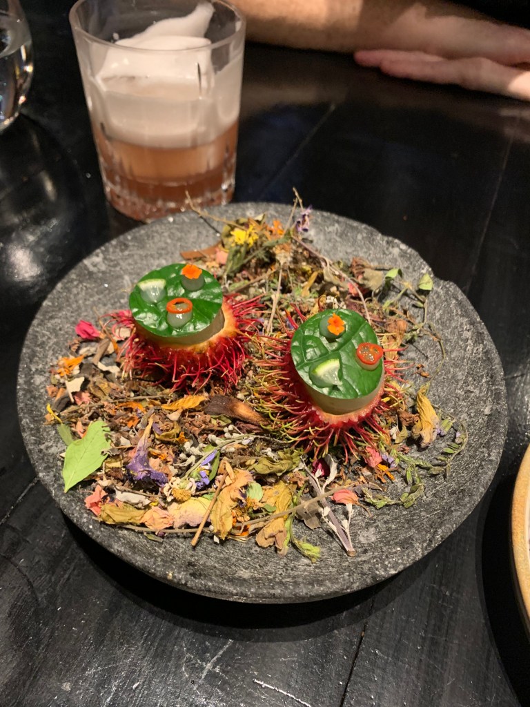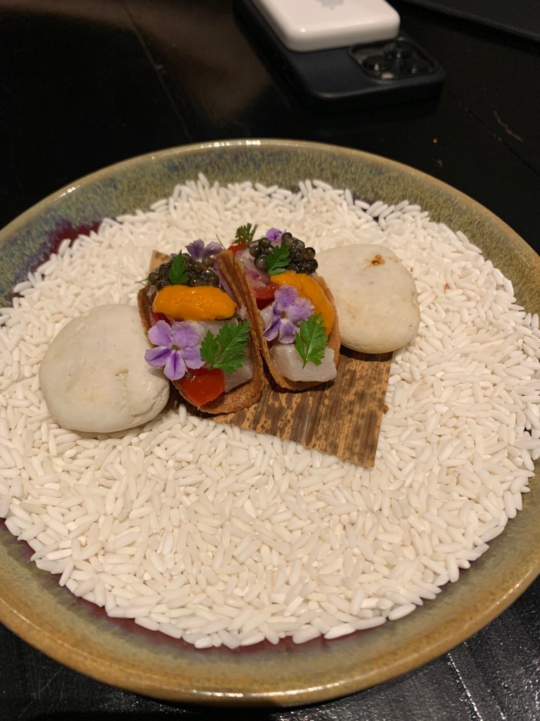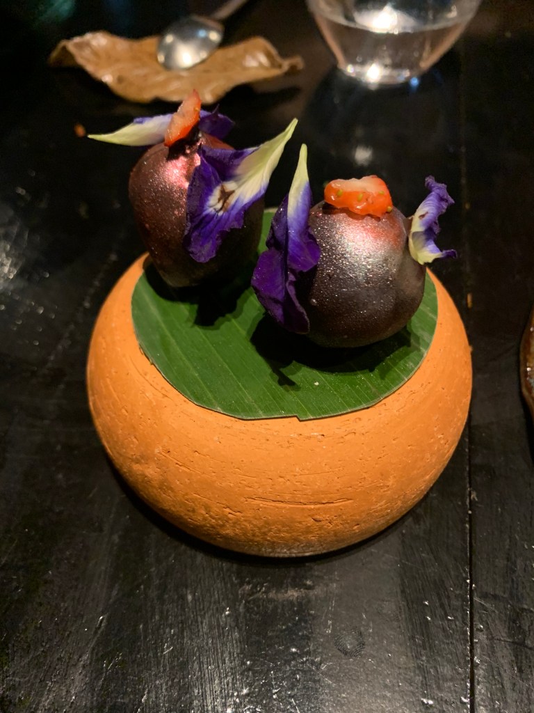 Bir de bir tavsiye olarak, Tayland’da tadım menülerine şarap eşleşmesi almamanızı ve hatta daha genel olarak Tayland’da şarap içmemenizi tavsiye ederim. Genel olarak Avrupa şaraplarını, bizim buralarda erişebildiğimiz fiyatların çok üzerinde servis ediyorlar, pek de matah olmayan şaraplar çok lüks şarap segmentinde fiyatlanıyor. Bu nedenle örneğin bu tadım menüsünde de şarap eşleştirmesini pas geçip kokteyllerden yana yaptık tercihimizi, çok daha ekonomik ve çok daha lezzetli bir tercih oldu.