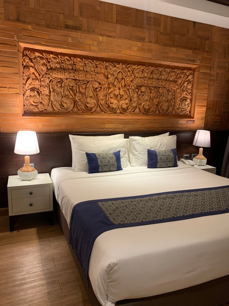 Biz Phor Liang Meun Terracotta Arts‘ta konakladık. Eski şehrin göbeğinde, tapınak gibi gösterişli bir girişi olan ve dekorasyonu ağırlıklı olarak adını aldığı terra cotta malzemelerden oluşan oldukça güzel bir otel burası. Gün içinde takılmak için minik bir havuzu da var.