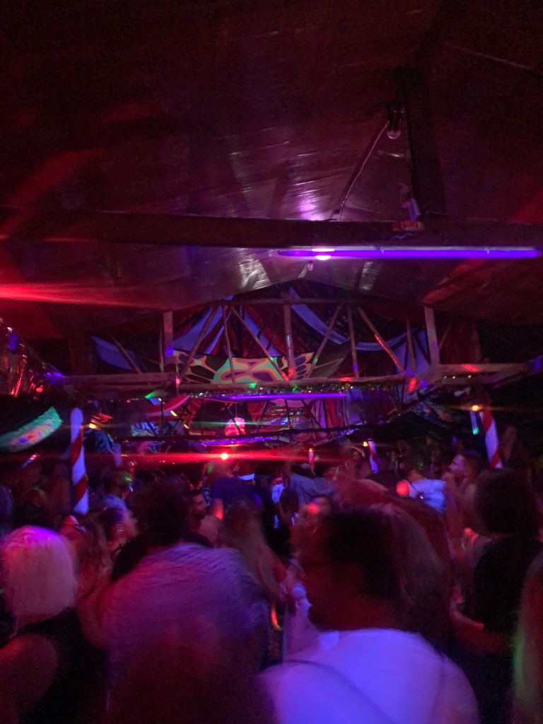 Ormanın içinde yürürken, hiç bir müzik sesi gelmediğinden, çok havalı bir parti beklemiyorum – ta ki Eden’in kapısına ulaşana kadar. Ormanın içinde, denizin üzerindeki kayalıklara kurulmuş dev bir ahşap alan bu gece klübü. DJ kabinin bulunduğu bir iç alan, üç tane farklı bar ve açık alanda minderlerle dolu kocaman bir alanı daha var. Oldukça kalabalık, diğer yandan herkesin dans etmeye alanı olacak kadar tam kıvamında ideal bir kalabalık. Hayatımda şimdiye kadar gördüğüm en güzel dans ortamı. Kimsenin elinde telefon yok, kimse story çekmiyor, şahane bir müzik çalıyor ve herkes gerçekten dans ediyor ve eğleniyor. Yanında durduğunuz herkes dans ederken gülümseyerek selam veriyor. Gece hayatı ve dans etmeyi seven herkes için bir ütopya olabilecek güzellikte bir ortam.