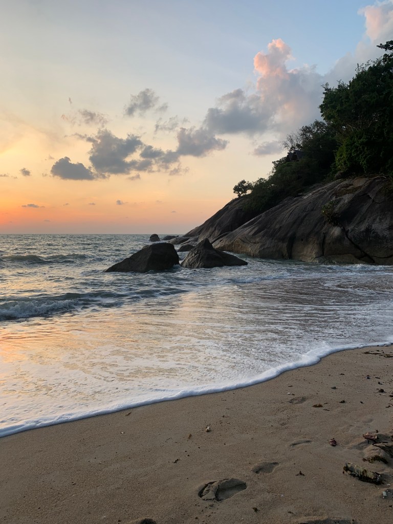 Gece klübünden çıkınca bir ulaşım aracına binmeye alışmış biri olarak, ormanın içinden yürüyerek, denizin üzerinde yeni yeni ışıldamaya başlamış güneşi izleyerek eve geri dönmek o kadar keyifli geliyor ki! Odamıza dönesimiz gelmiyor, sahildeki hamaklardan birine yatıyoruz. Koskoca sahilde bizden başka kimse yok, deniz masmavi, gökyüzü kıpkırmızıdan maviye dönüyor. Büyülenmiş haldeyiz, konuşmuyoruz bile. Zaten kımıldamaya hiç takatimiz kalmamış.