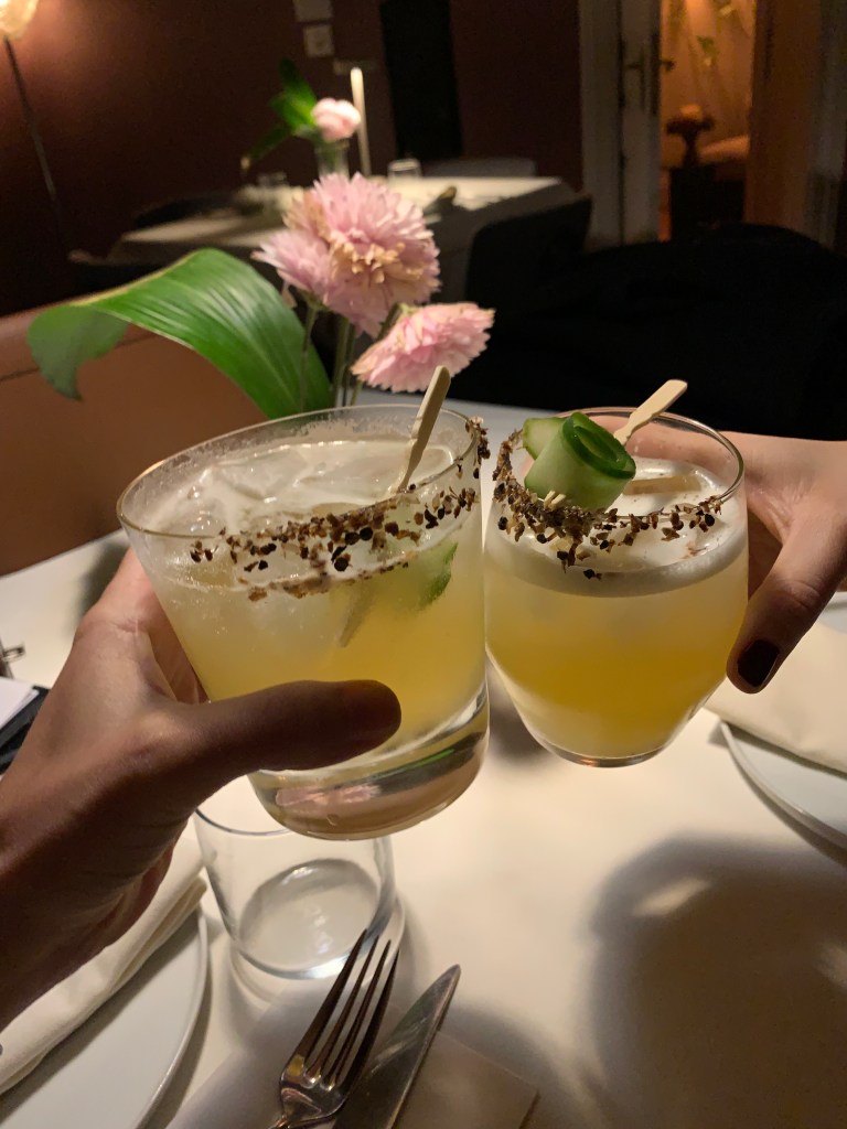Atmosfer muazzam, tam ortadan inen dev heybetli kristal avizenin arkasındaki, dev bar ve yüksek tavanlar muhteşem bir ortam sunuyor. Yediğimiz her şey ve içtiğimiz kokteyller de gerçekten lezzetliydi.