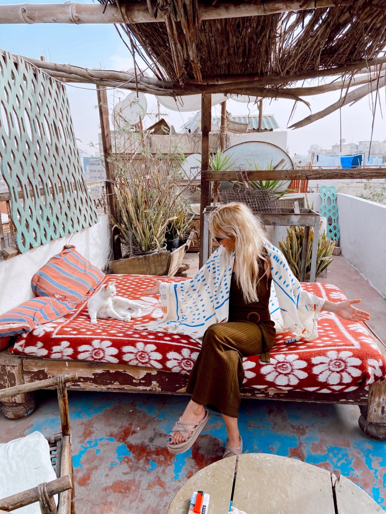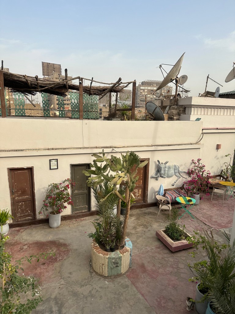 Bu sayede, havalimanı çıkışında tutulan kağıtlar arasından kendi adımızı buluyor ve oldukça eski bir arabaya binerek şehri izleyerek otelimize doğru yola çıkıyoruz. Kalacağımız yeri bir önceki gün Hurgada Marina‘da otururken, hiç detaylıca incelemeden sadece yorumlarına ve puanlarına bakarak seçmiştik: Dahab Hostel. Burası hakkında giderken bildiğim iki şey vardı; lokasyonu muhteşemdi ve çok övülen bir terası vardı.