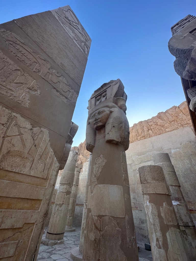 Bu tahribat sebebiyle tapınağı da büyük ölçüde zarar görmüş ve sonradan canlandırmak amacıyla yenilenmiş. Bu yüzden malesef gezerken, diğer tapınaklardaki havayı ve tarihi hissi alamıyorsunuz burada. Ancak dağın yamacına yerleşmiş bu mütevazi sayılabilecek tapınağın, bir yandan hüzünlü, diğer yandan başkaldıran bir havası var. Gerçekten Hatşepsut’un hayatının hikayesinin hissini veriyor.