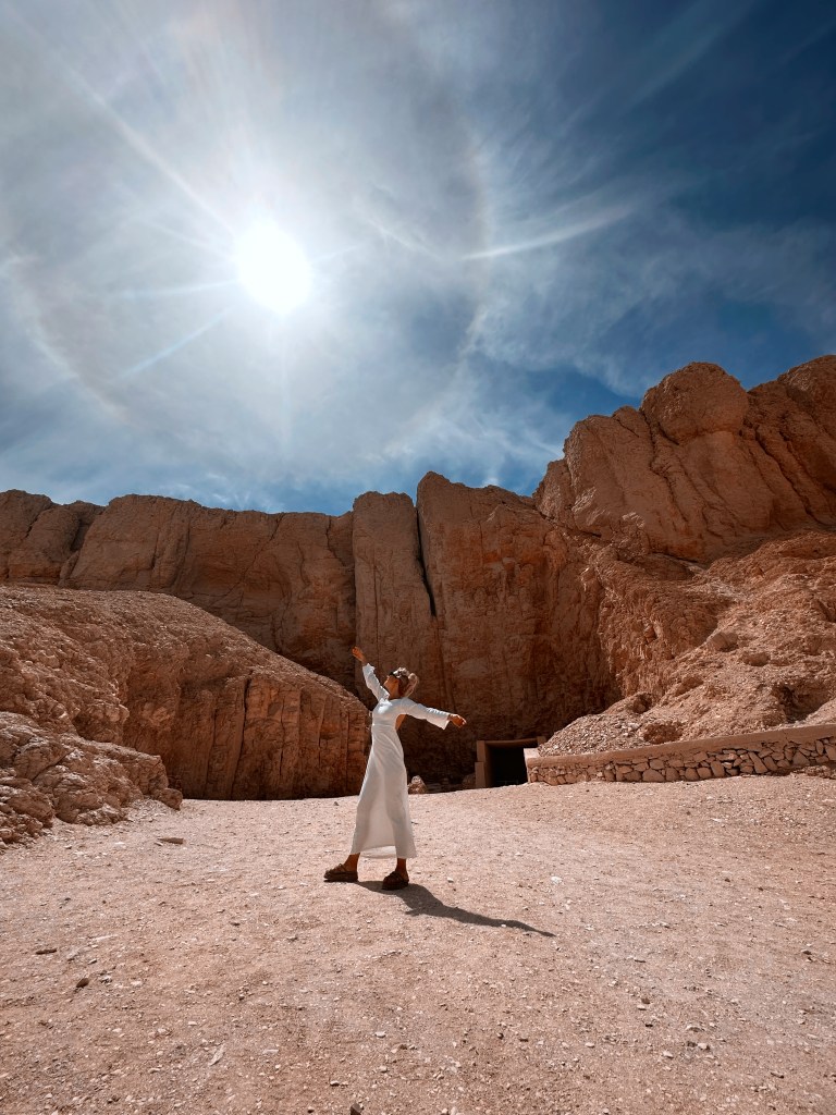 İlk istikametimiz Krallar Vadisi. Eski Mısır uygarlıkları, ölümden sonraki hayata inandıkları için, mezarlık oldukça önemli ve gösterişli bir konu olmuş onlar için. Hazineler, kıyafetler, mumyalanmış vücutlar, ihtiyaç duyacakları her türlü eşya… Ancak piramitler bangır bangır “burada kıymetli eşyalarla dolu bir alan var” diye bağırdığı için ve hırsızların vurgunlarından kurtulamadığı için, yeni krallık döneminde dağların içine gizli mezarlar yapmaya başlamışlar. Mezar dediğimde sadece tek bir oyuk gibi düşünmeyin, bugün bizim İstanbul’da yaşadığımız evlerden daha büyükler.