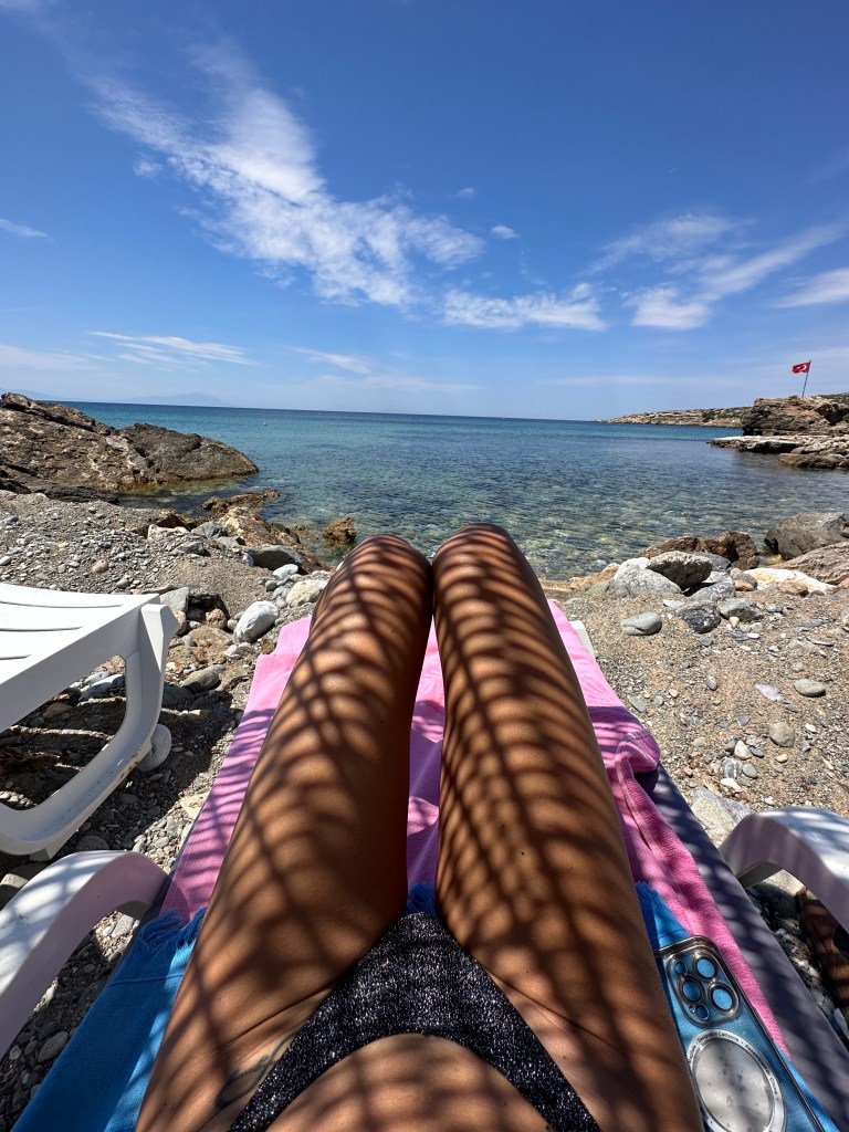 Sonra gittiğim Teos’ta sakin hayatın keyfini sonuna dek sürdüm. Annemin leziz yemeklerini yedim, annem ve babamla çok kahkahalı uzun sofralarda oturdum, terastaki ofisimde ne zamandır aklımda olan bir proje ve raporu bitirdim, her gün yoga yaptım, hiç makyaj yapmadım, deniz kıyısında ve yüzerek bol bol vakit geçirdim, hiç bir şey yapmadan deniz manzarası izledim.