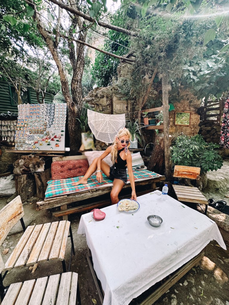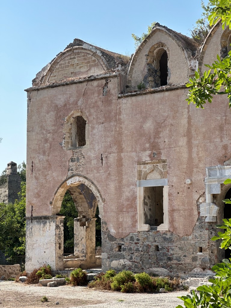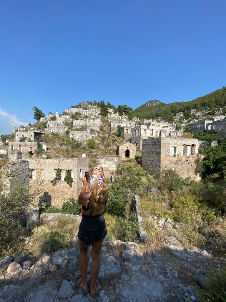 Fethiye’nin bu hayalet köyü çok uzun zamandır görmek istediğim yerlerden biriydi o güne kısmet oluyor. Osmanlı döneminde Rumlar tarafından yapılan yapılardan oluşan bu köy, mübadele döneminde boşalıyor. Bu açıdan evini geride bırakanların ve oldukça hüzünlü bir hikayenin kalıntıları olsa da, bu gün orada gezmek insana hüzünlü hissettirmiyor. Asice büyümüş binaları sarmış yeşillikler, yıkıntılar arasında gezinen keçiler ile oldukça fotojenik bir ortam sunuyor.