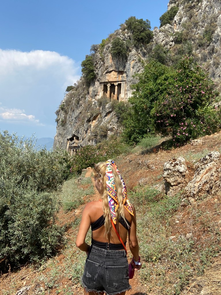 Bir sonraki kahverengi tabela bizi Amyntas Kaya Mezarları’na götürüyor. (Ben böyle yazıyorum ama aslında bu kadar da tesadüfi olmuyor, arka planında Aslıpan’ın bir planlaması var. Ama o kadar bana hissettirmiyor ki, benim deneyimim daha çok tesadüfen karşımıza çıkmışlar da gidiyormuşuz gibi oluyor. ❤ )