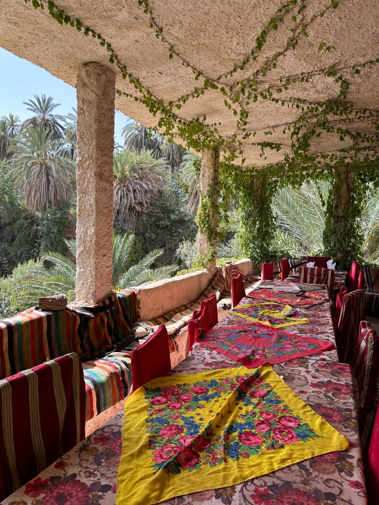 Günün ilk yarısı bittikten sonra, rehberimizin çok sevdiği doğanın içindeki restorana oturduğumuzda dördümüz de mestiz. Gelen her yemeğin yumurtalı olması ve ben yumurta yemediğim için, herkesin tabağındaki patates kızartmalarını toplayıp meşhur acı sos harissa’ya batırıp batırıp yerken, restoranda alkol servisi olmadığı için bir soğuk bira içememeye bile takılmıyorum o an.