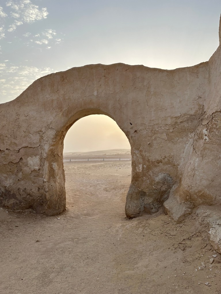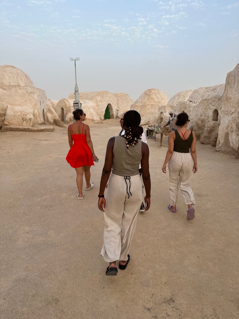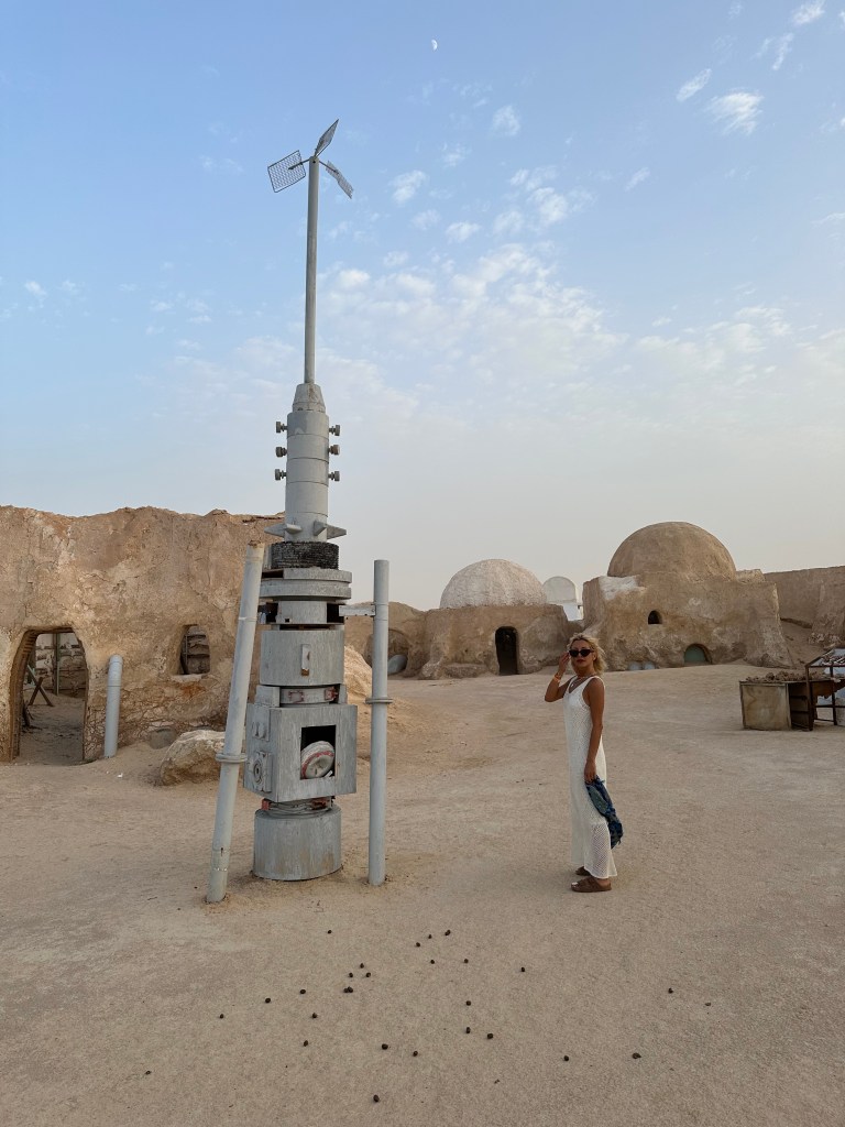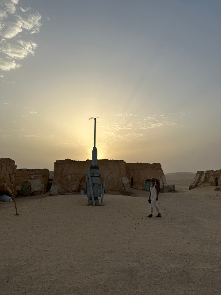 Star Wars’un çekildiği sete de gidiyoruz. Star Wars’un fanatikleri, sırf Star Wars kostümleri giyerek bu sette gezmek için geliyor Tozeur’a. O yüzden hemen lokaller, her köşeye tezgahlarını kurmuş, bir şeyler satıyorlar. Oldukça enteresan bir görüntü: Star Wars setinin yanından develer geçiyor, ortasında tezgahlarda el işleri satılıyor, Star Wars kostümlü insanlar oralıkta yürüyor.