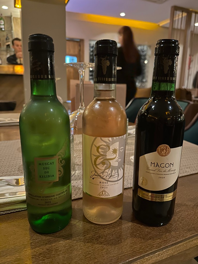 Çünkü biz o trenle Tunus’a akşam 21:00’de varıyoruz. Doğrudan bir Bolt çağırıp, şarap kavı güzel bir restoran olan ‘La Salle a Manger‘a gidiyoruz. Tuvalette hızlıca üzerimizdekileri değiştirip, kendimizi tazeliyoruz. Oldukça şık bir ortamda, lezzetli yemekler yiyerek çok güzel Tunus şarapları içiyoruz.