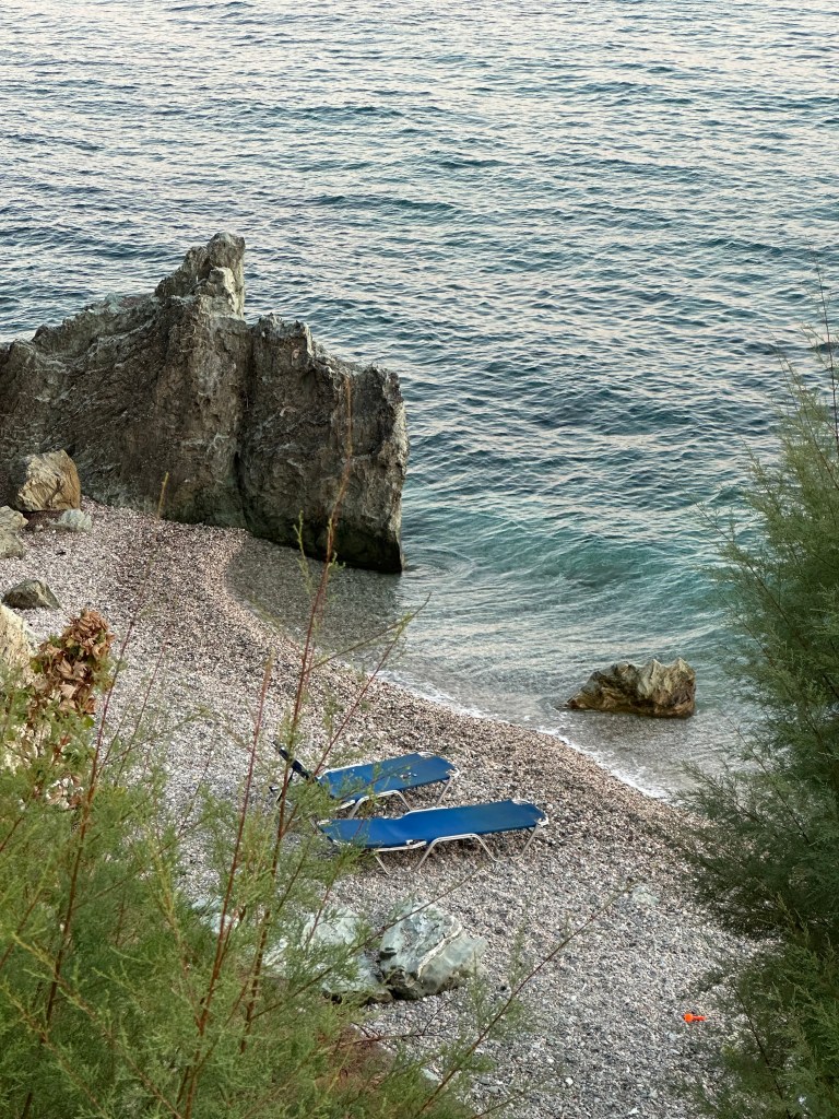 Kasaba merkezinden yürüyerek ulaşabileceğiniz güzel plajlardan biri Ammoudeli Beach. Belli bir ücret karşılığında şezlong ve şemsiye kiralayabilir ve bütün günü burada keyifle geçirebilirsiniz. Ben sahildeki yeşil taşlara da bayıldım burada.