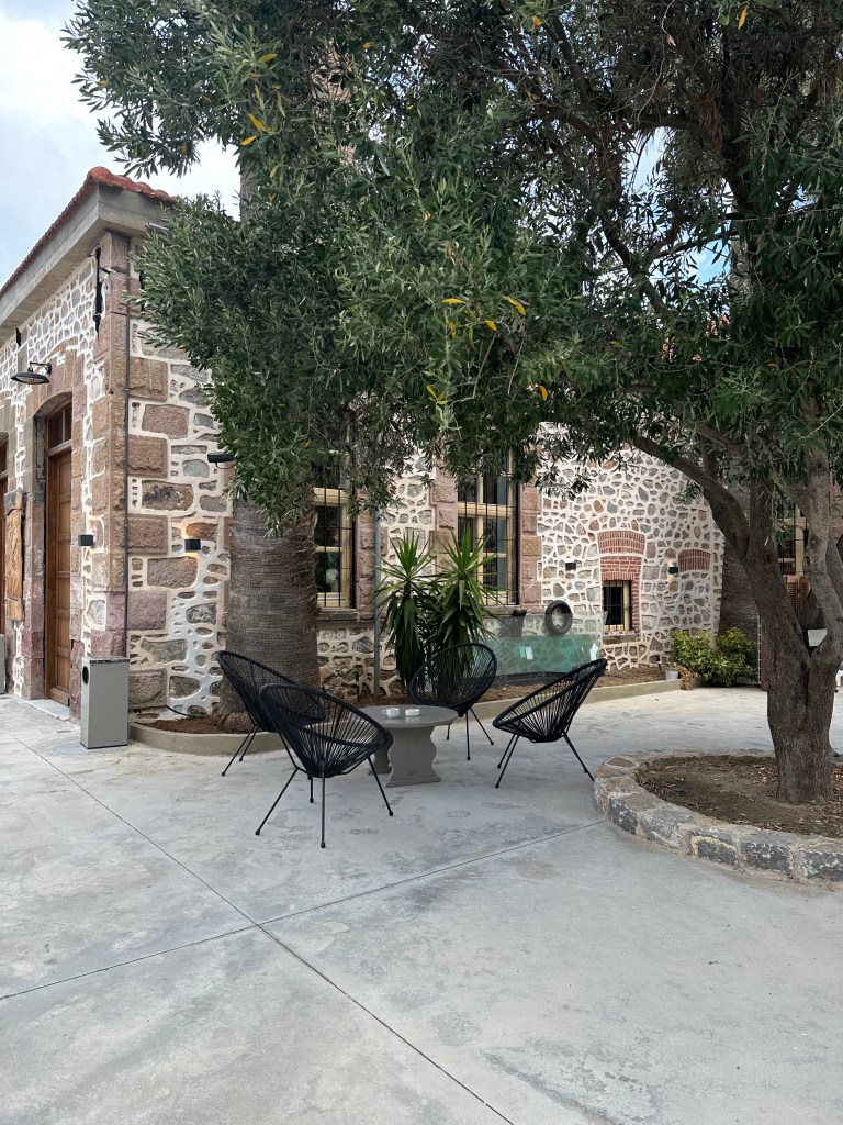 Eski bir zeytinyağı fabrikası olan bu bina, çok modern bir iç dekorasyon ile yenilenerek çok güzel bir butik otele dönüştürülmüş. Deniz açısından beklentilerinizi çok yükseltmeyin, kaplıca kasabası olan bu bölgede deniz de sıcak ve daha kahverengi. Otel adadaki diğer otellere kıyasla fiyat olarak daha yüksek ve daha lüks bir otel izlenimi verse de; sahile servis bile yapmayan, servis açısından öyle bir lüks beklentisini karşılamayan bir otel. Yine de genel ambiansı, dekorasyonu, sessizliği ve verdiği huzur ile kesinlikle gitmeye değiyor. Bize en iyi gelen, dinlenmiş hissettiren yer burası oldu adada.