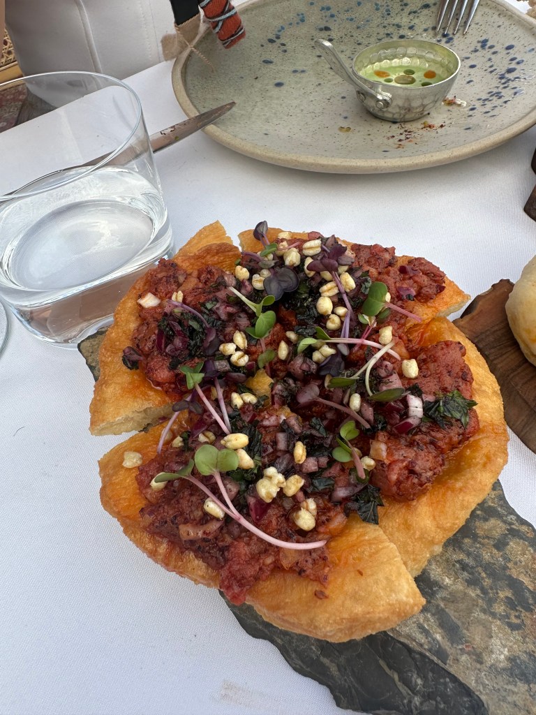Şakşukalı burrata ve ballı peynirli börek de müthiş lezzetliydi. Üstelik de porsiyonlar alıştığımızdan çok büyük çok doyurucuydu. Biz iki başlangıç söyledik, ana yemeğe geçemeyecek kadar doyduk. Şiddetle tavsiye ederim.