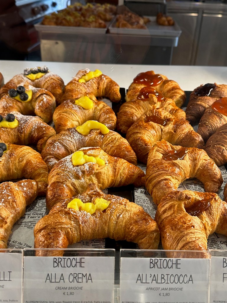 Tam karşısında şimdi adını hatırlamadığım çok meşhur, önünde çok uzun kuyruklar oluşan bir cafe’ye geldiğimizde tesadüfen keşfettik burayı. Muazzam leziz kruvasanlar ve prosecco ile kahvaltı yapmak için müthiş bir adres. Burası aynı zamanda bir yemek okulunun restoranı olduğu için, bir yandan da taze makarna yapımı eğitimi alan öğrencileri de izleyebiliyorsunuz.