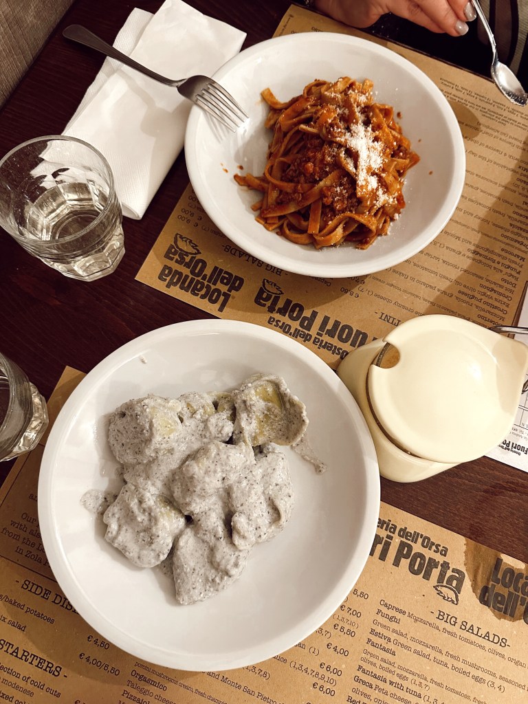 Bildiğiniz gibi Bolonya, bolonez sosun (ragu) da ana vatanı. Osteria dell’Orsa, el yapımı makarnaları ve 0 kilometre uzaktaki organik sebzeleri ile rezervasyon kabul etmeyen kapısında sıra bekleyerek girilen bir makarnacı.