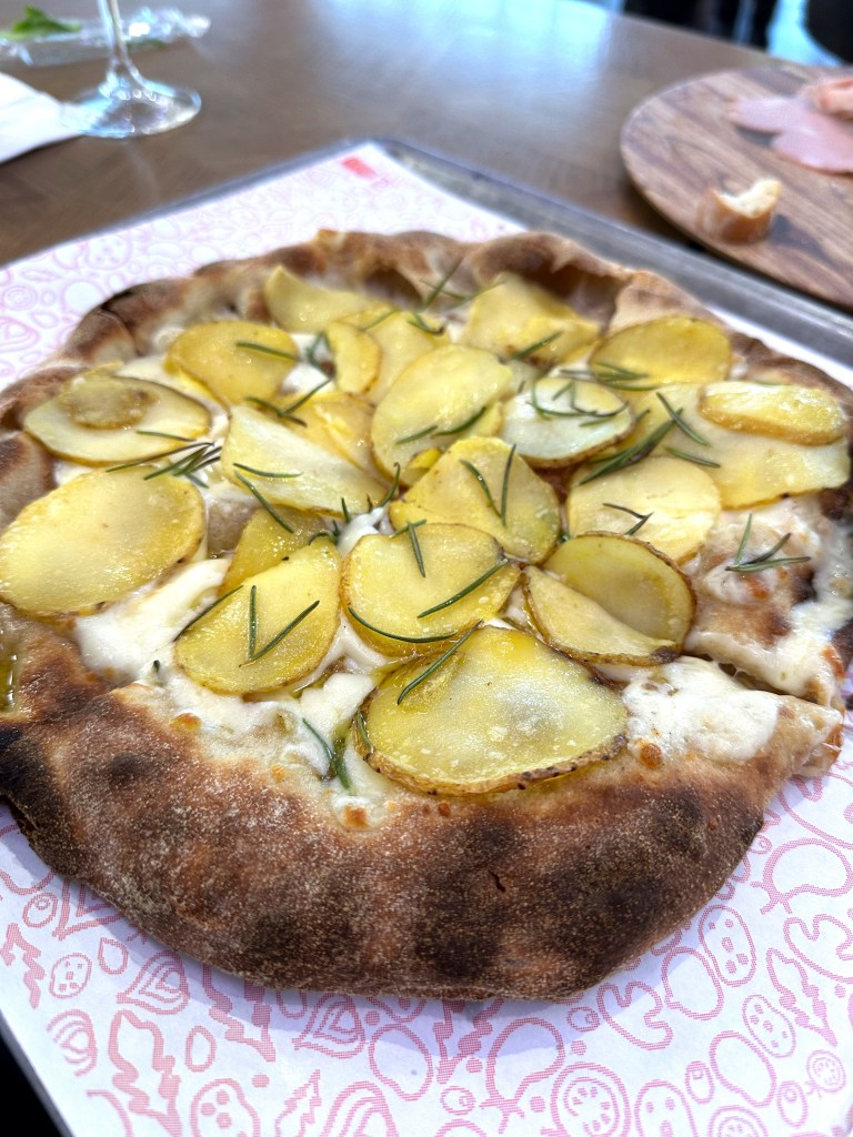 Ertesi gün havalimanında bile muazzam lezzetli patatesli bir pizza ve şarküteri tabağı eşliğinde şarap içerken İtalya’ya daha sık gelmem gerektiğini hatırlatıyorum kendime.