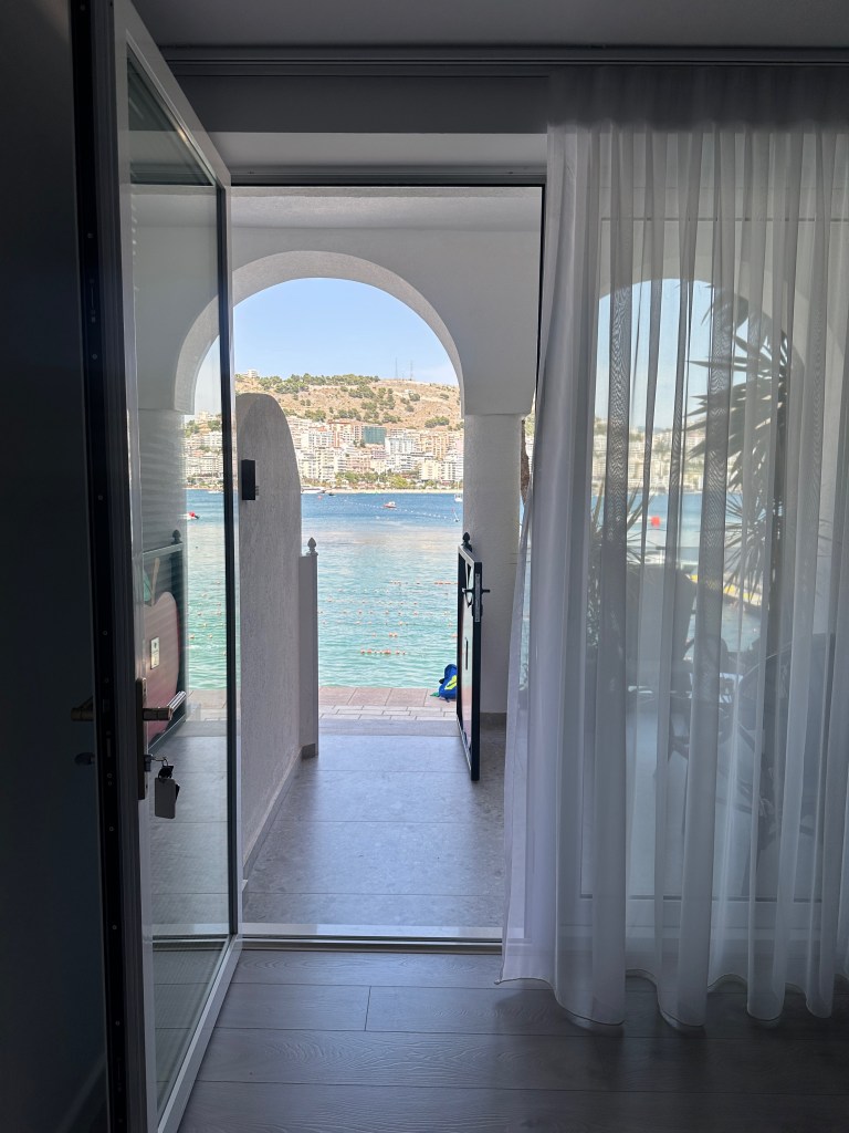 Sonra kendimize marketten prosecco ve hazır kokteyllerden alıp otelimizin balkonuna dönüyoruz. Saranda’da bir gün daha kalmaya hiç niyetli değiliz, o yüzden balkonumuzda güzel manzaramızı izleyip sohbet ederek bir sonraki istikametimizi organize ederiz diyoruz.