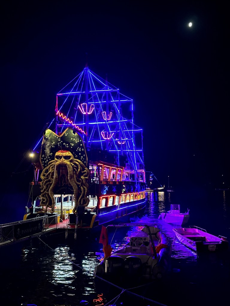 Akşam saatlerinde karnımız acıkmaya başlayınca uyanıyoruz, güzelce giyinip kendimizi sokaklara atıyoruz. Aşırı ışıklandırılmış gemilerdeki kitch eğlenceler ile avlanmaya çıkmış erkek grupları hiç bizi cezbetmiyor.
