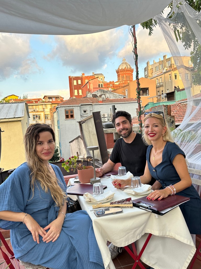 Sonra Berk Yunanistan’dan, Anisa Hollanda’dan geliyor ve bizim Guatemala ekibi tam kadro İstanbul’da toplanıyor. Yemek için Galataport Muutto‘ya gidiyoruz. Nedense İstanbullular arasında Galataport’a turistik diye burun kıvırıp sevmemek zorunluymuş gibi bir tavır var ama ben gayet seviyorum Galataport’u. Manzarası şahane, mekanları güzel, püfür püfür esiyor. Ve arkadaşlarımdan, şirket misafirlerime kimi buraya götürsem vuruluyorlar. Moda’daki şubesinde alkol yokken, buradaki şubesinde alkol olması da bir avantaj – çünkü bence Muutto’nun yemekleri kesinlikle yanına bir rakı veya bira istiyor.