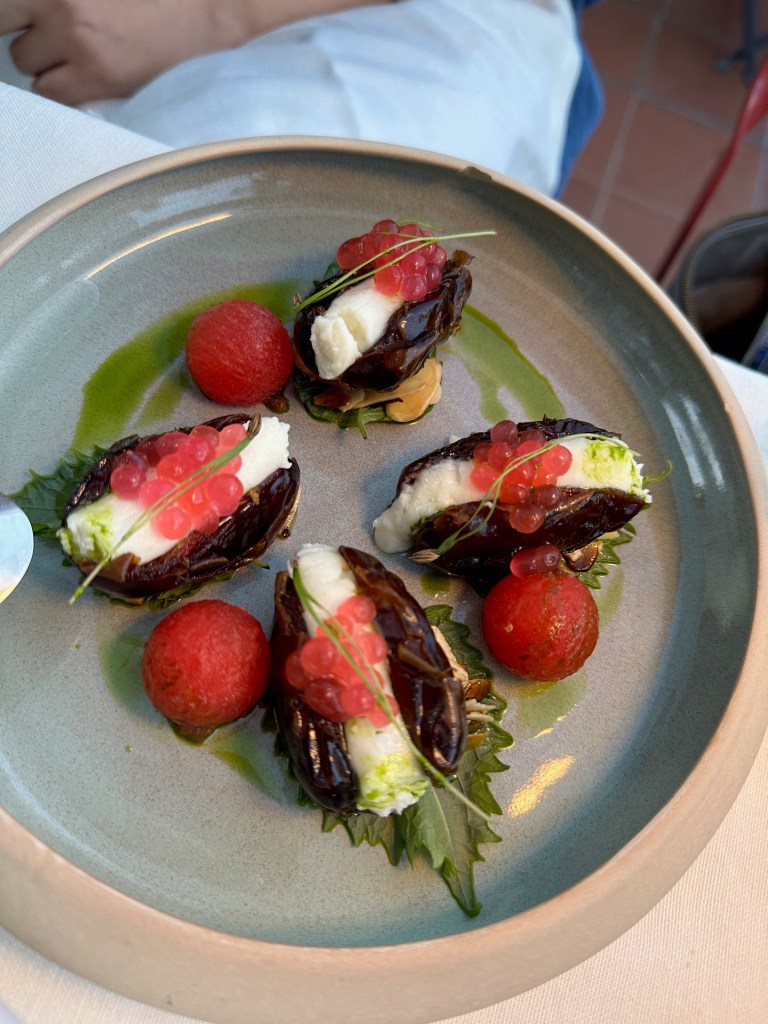 O gün yemeğimizi Kıyıbalık‘ta yiyoruz. Manzarası şahane. Alıştığımız üzere bir sürü meze seçeneği yok burada. Yani bir meze dolabı veya tepsisinden seçim yapabileceğiniz onlarca seçenek bulunmuyor. Diğer yandan lakerdası, karidesi, asma yaprağında balığı muazzam lezzetli. Çok uzun zamandır bu kadar iyi bir lakerda yememiştim. Benim açımdan tek dezavantajı, sigara içmek için kapıya çıkmanız gerekiyor. O kadar güzel lakerda rakıyla birleşmişken onları bırakıp kapıya gitmeyi ben sevmedim.
