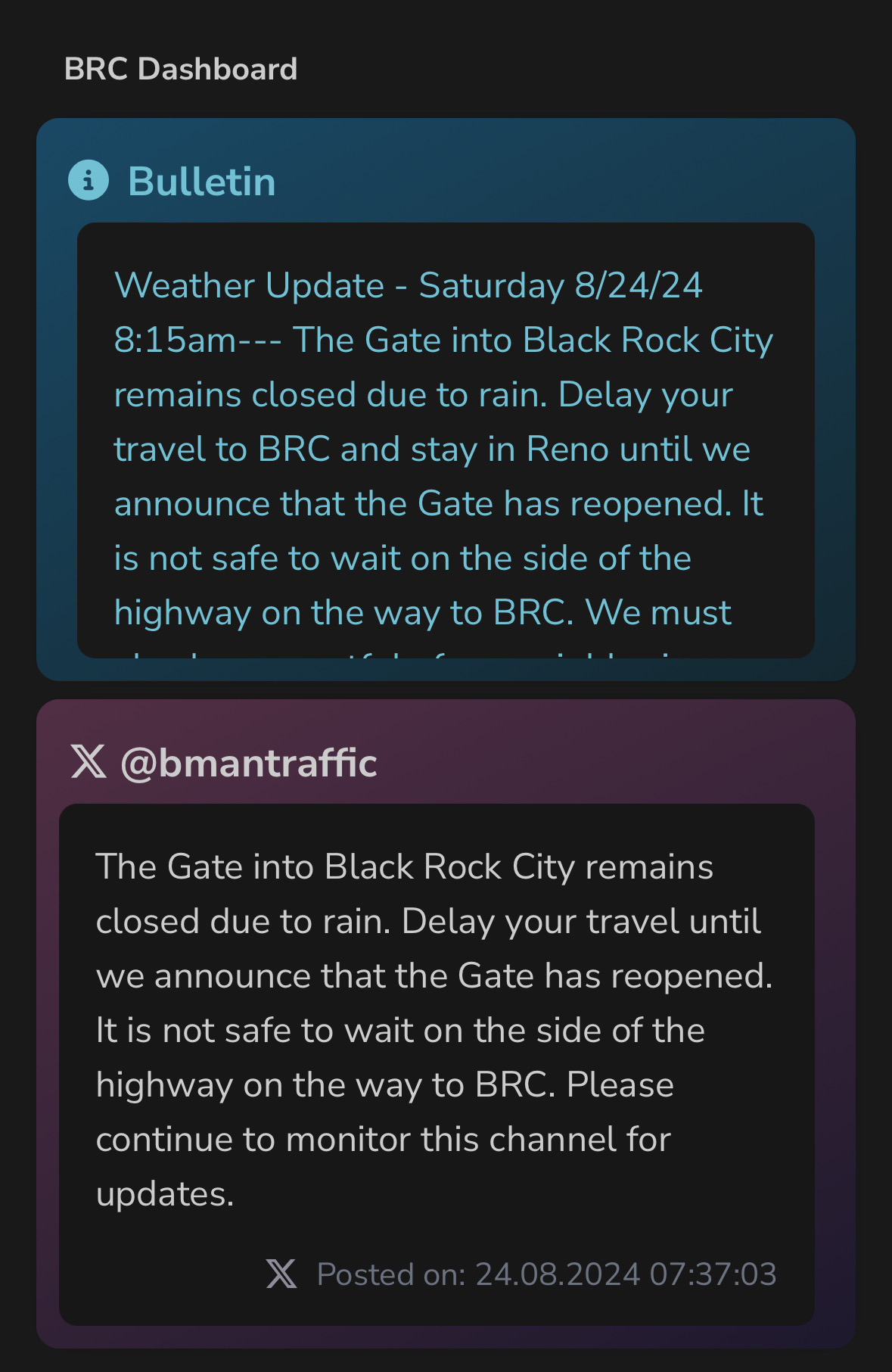 Ve bu sırada Black Rock City’nin kapılarının ne zaman açılacağını bilmiyoruz. Yağmur durmasına rağmen alan kuruyana kadar kapıların açılmayacağı bilgisi var elimizde sadece. En azından yağmurun durması olumlu bir gelişme.