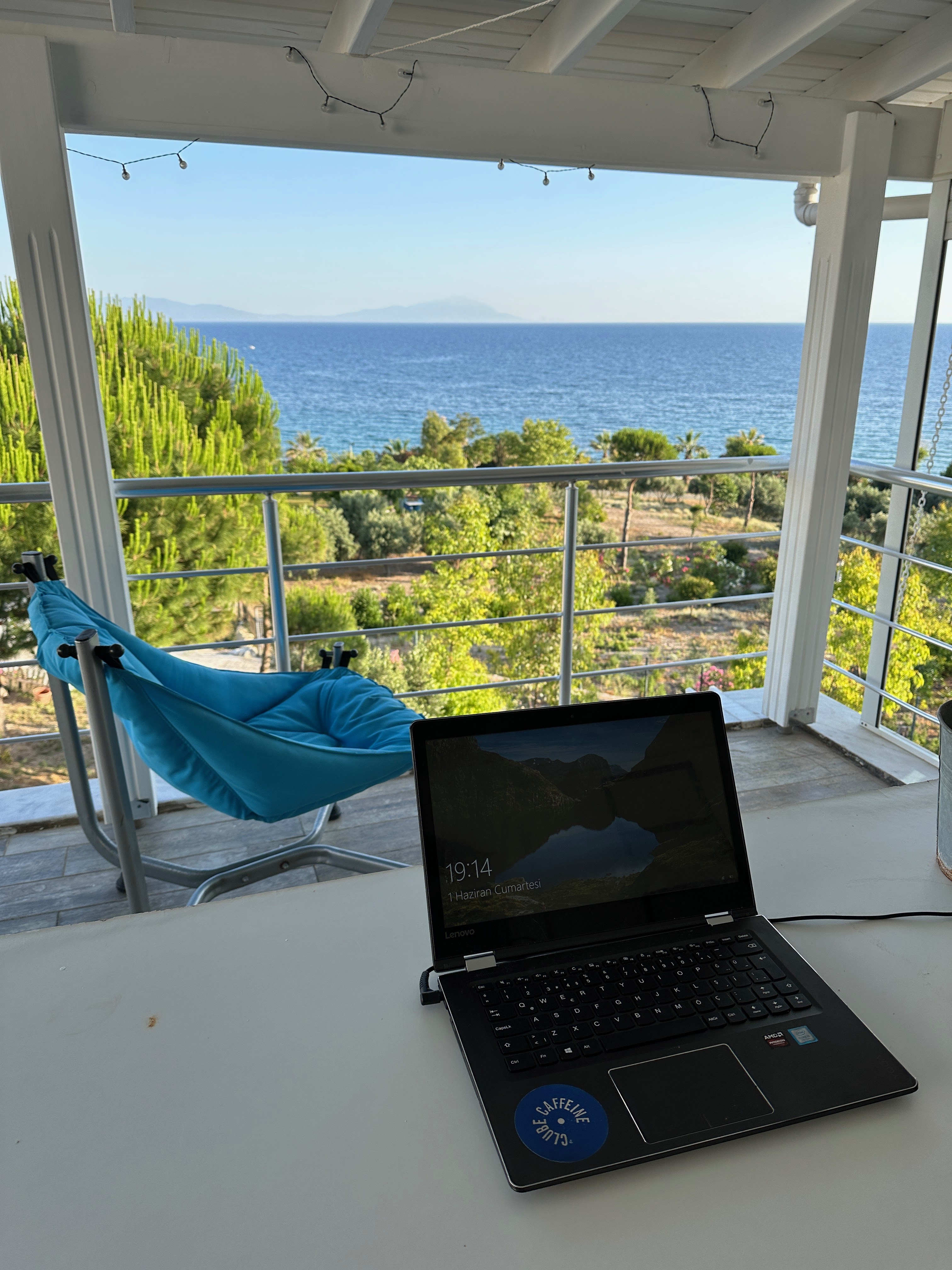 Annemin müthiş kahvaltıları eşliğinde çatıdaki güzel manzaralı terasımda işlerimi yapıyorum, öğlenleri denize gidip, berrak denizde yüzüp sonra güneşlenerek kitabımı okuyorum, akşamüstleri yanık tenimin üzerine sweatshirt giyecek kadar tatlı bir serinliğin tadını çıkartıyorum.