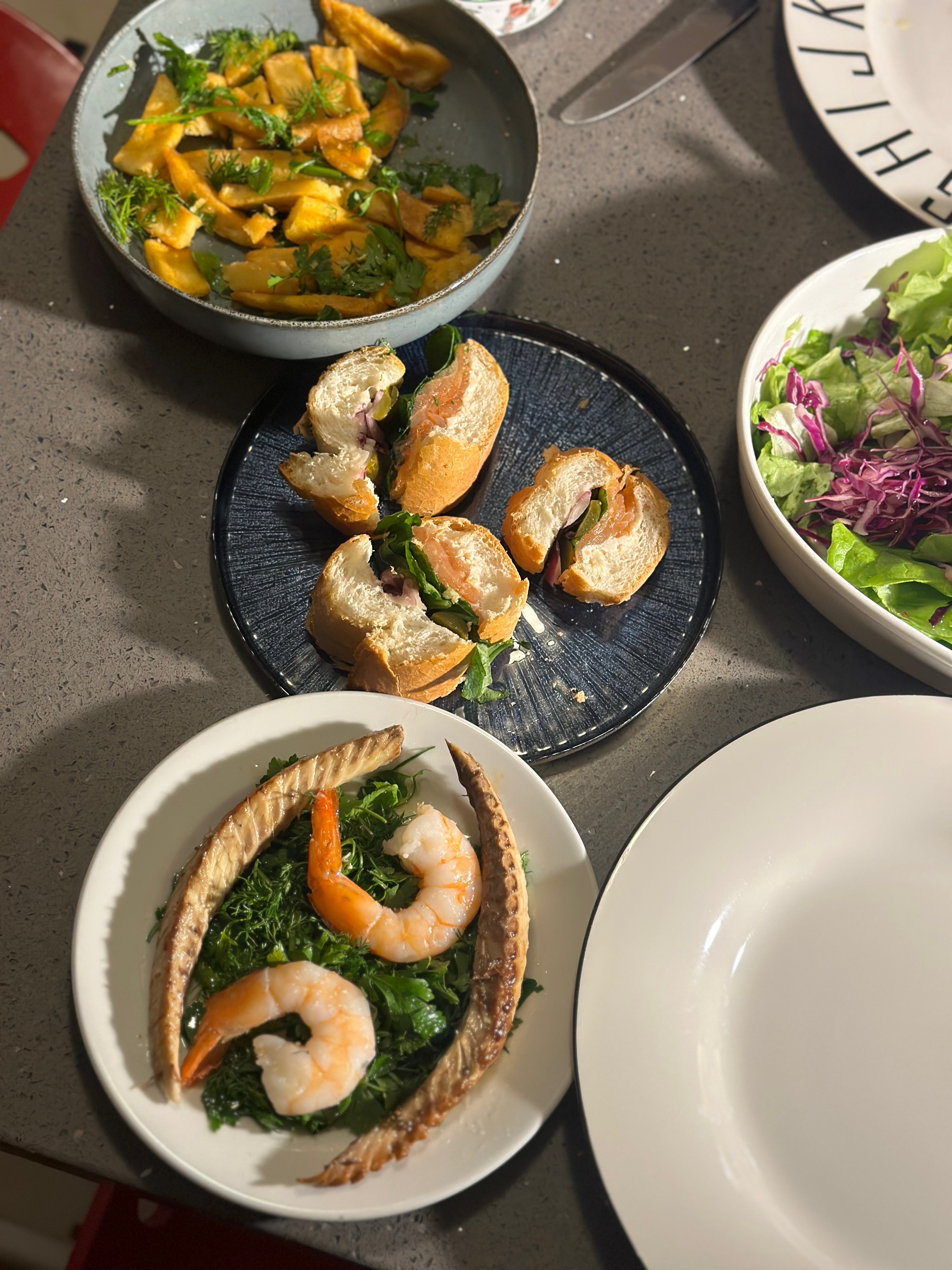 Annemle de Tunç Balık‘tan taratorlu sandiviç, füme ve karidesler alıp evde pratik ve leziz masalar kurduk. Benim özellikle füme balık konusunda çıtam yüksektir, buradaki çok ama çok iyi.