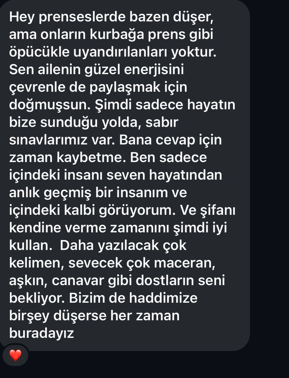 Paris’te hiç bu muhabbeti açmadan sadece kokteyl içmeye gelecektim. Yetişememiştim. Süreci sadece kendini düşünerek yönetmen de halen ilham verici. Sağlıkla 🌸💕✨