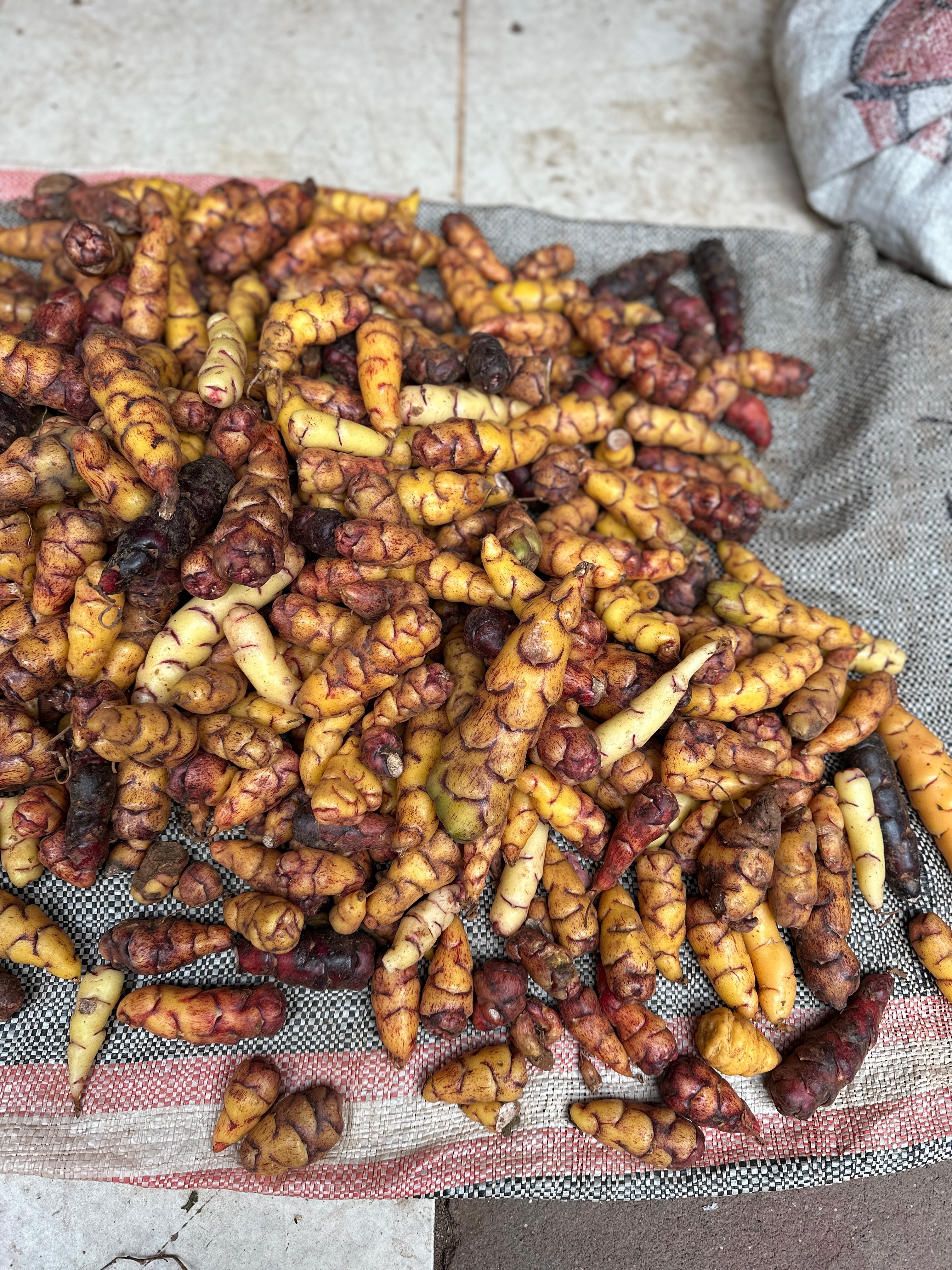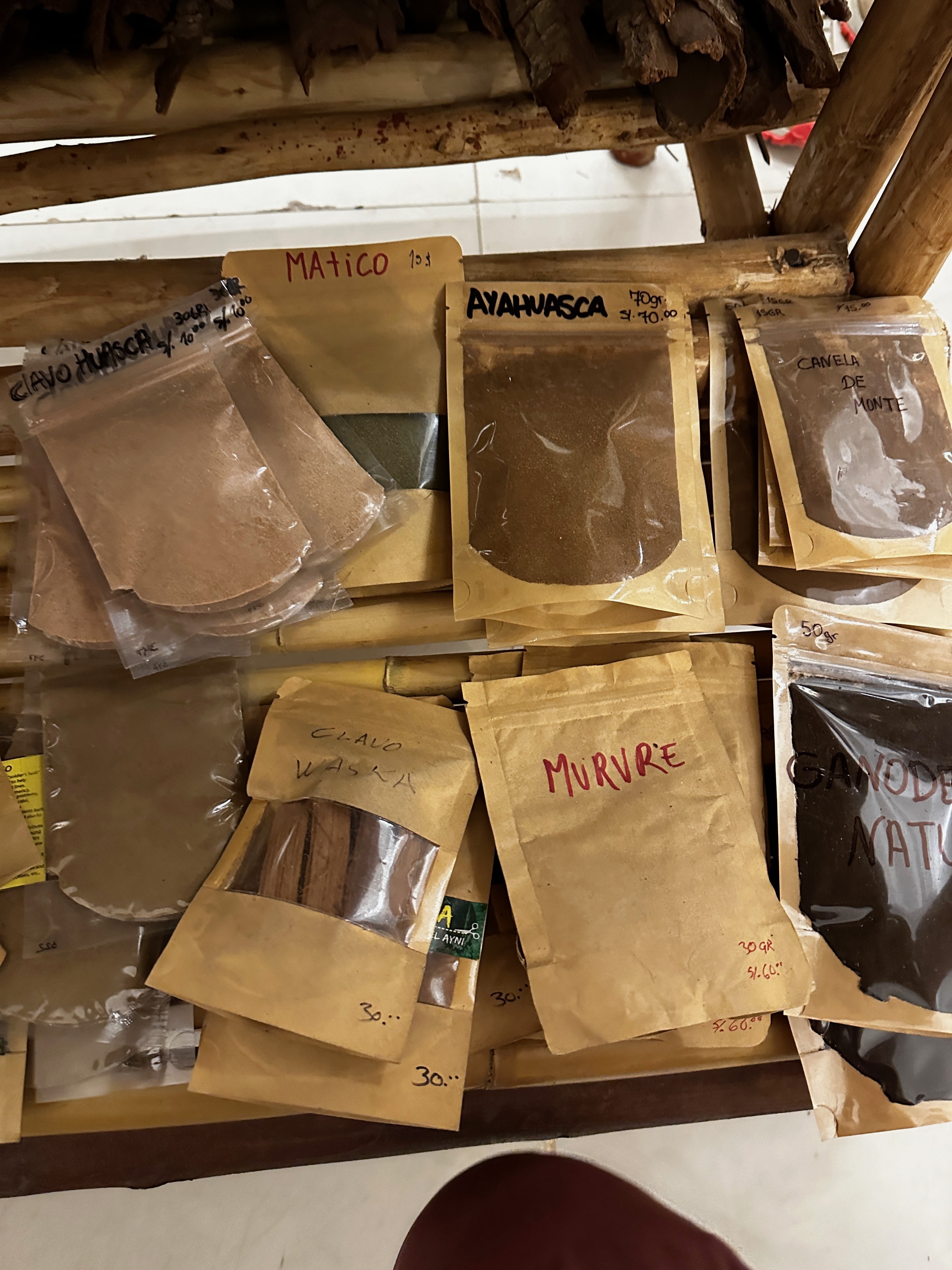 Sebze ve meyvelerin dışında da, butikler dahil olmak üzere neredeyse her dükkanda çeşit çeşit bitkisel toz satılıyor. Yüzlerce daha önce hiç duymadığım şeyi bir arada buluyorum, chat gpt bu konuda çok iyi – fotoğraf çekip soruyorum ne olduklarını. Kil maskesiyle, halüsinojik çayın aynı grup ürün olarak satılmasına çok gülüyorum.