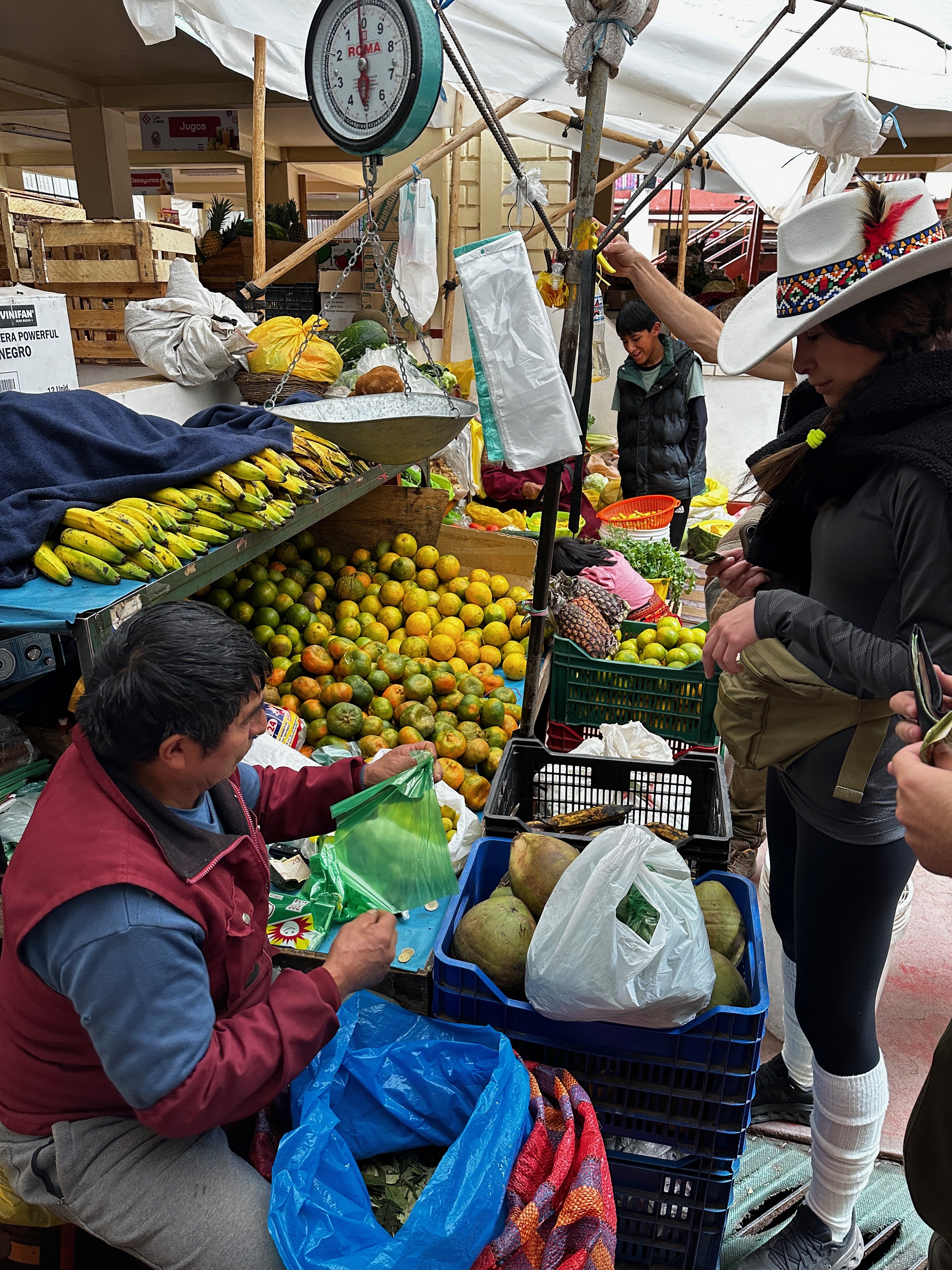 Pisac’ın pazarında gezmeye bayılıyorum, küçük bir çocuk gibi sürekli “Bu ne? Bu ne?” diye sorarak, denemek için bir şeyler satın alıyorum.