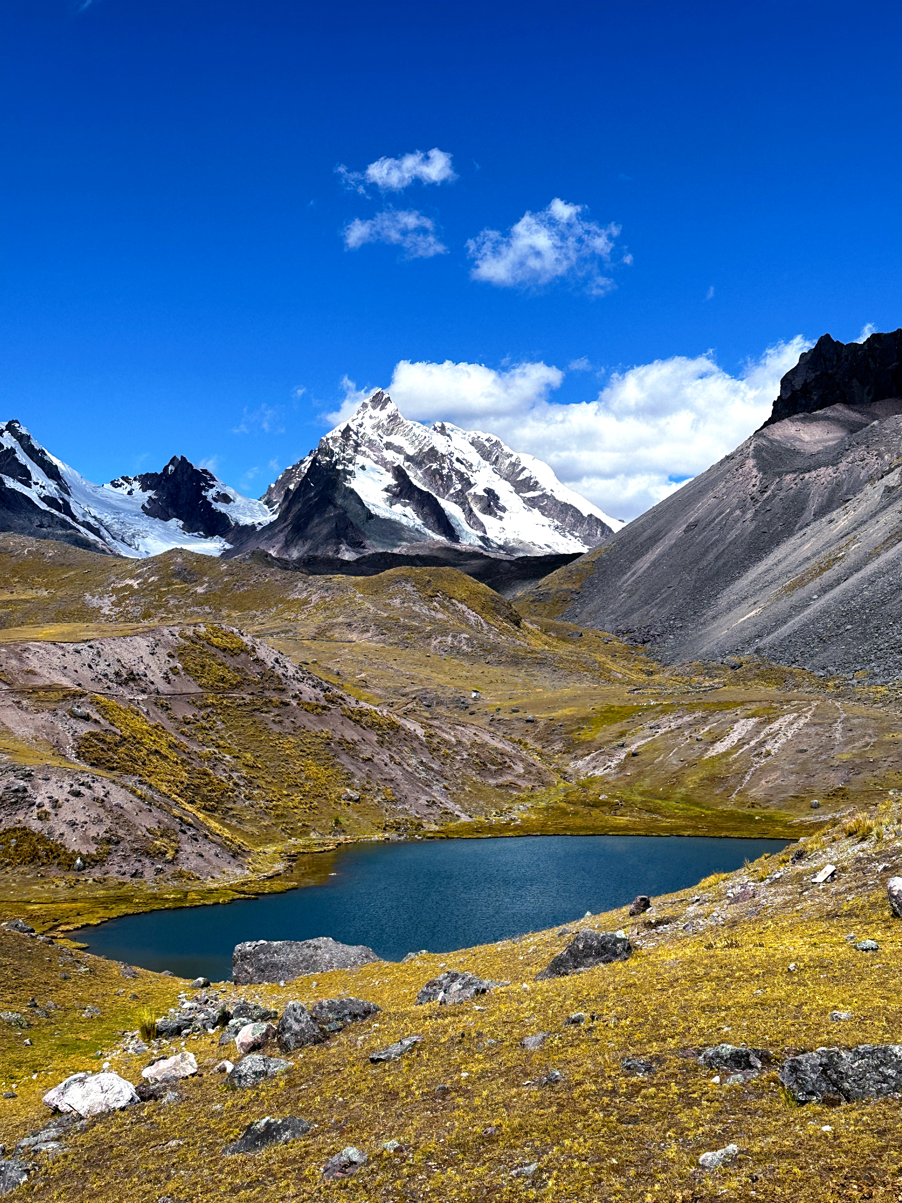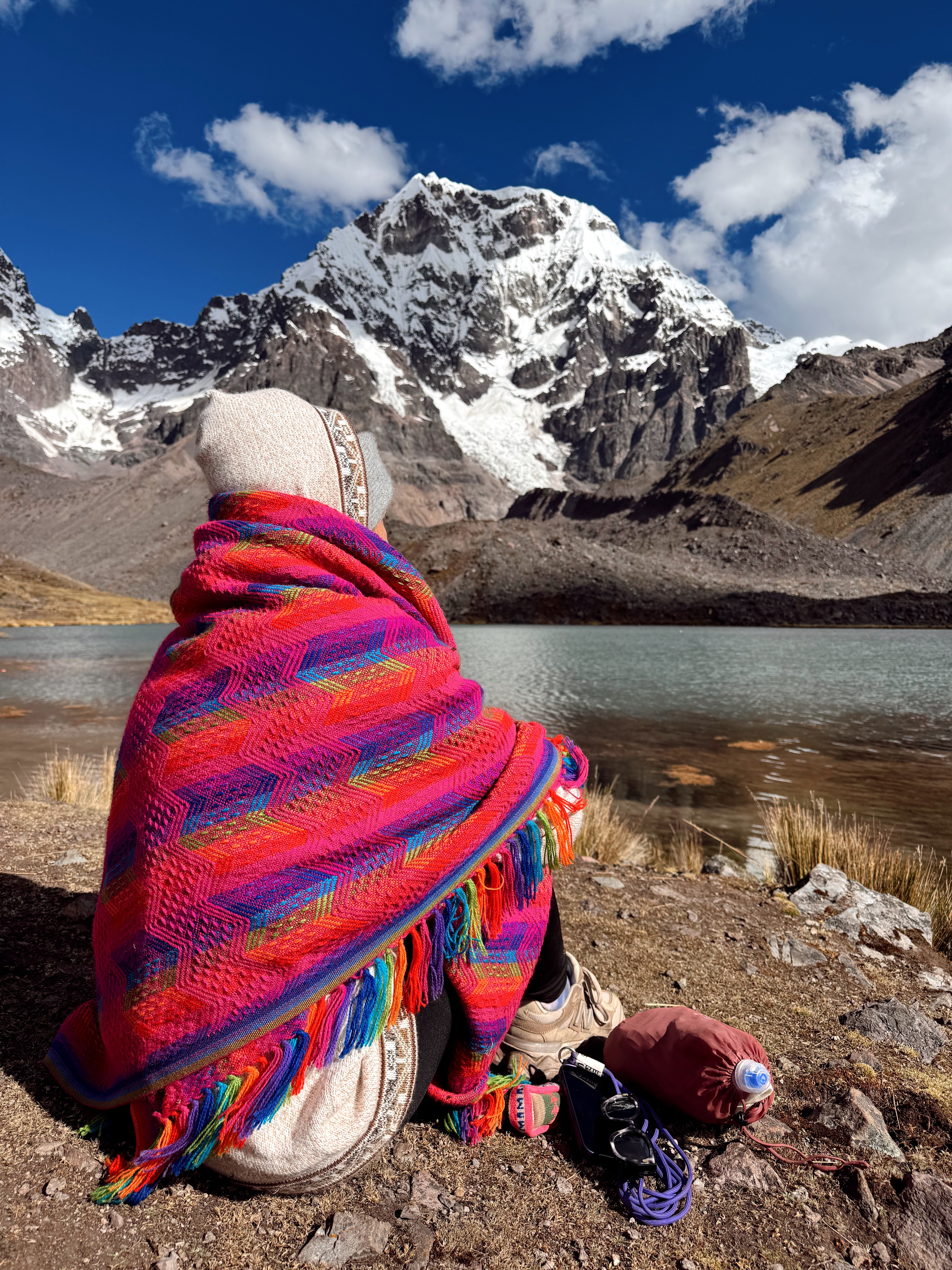 Soğukla başa çıkmak için battaniyemize nasıl koza gibi dolanacağımızı öğrendiğimiz ve erkenden uyuduğumuz geceden sonra atların üzerinde bir gün geçirdik: Ausangate’ye ve eteklerindeki göllere gittik. Ausangate, apuların babası. Gökyüzünün kalbine açılan kapı.