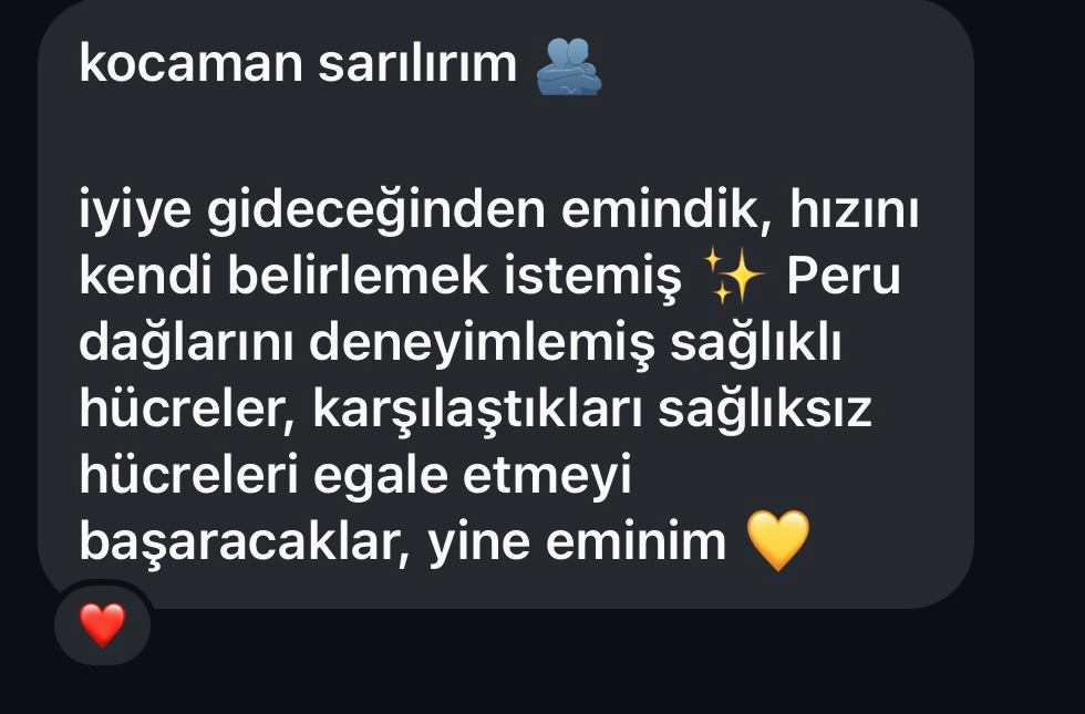 Tedavi bittiğinde ilk hedefim, çok önceden planladığım Peru seyahatime çıkabilecek kadar kendimi toparlamaktı. Bu nedenle Teos’a gittim, her gün ciğer yedim, sahilde yürüyüşler yaptım. Kan değerlerimi ve kaslarımı elimden geldiğince topladım. Hıdırellez dilekleri olarak tabii ki sağlık ve şifa diledim.