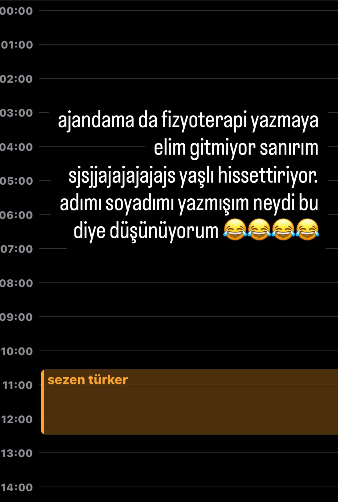 Fizik tedavi kulağıma çok yaşlı işi geldiği için iç güdüsel olarak ajandama fizik tedavi randevularımı “Sezen Türker” olarak kaydediyordum, fizik tedavi olarak değil.