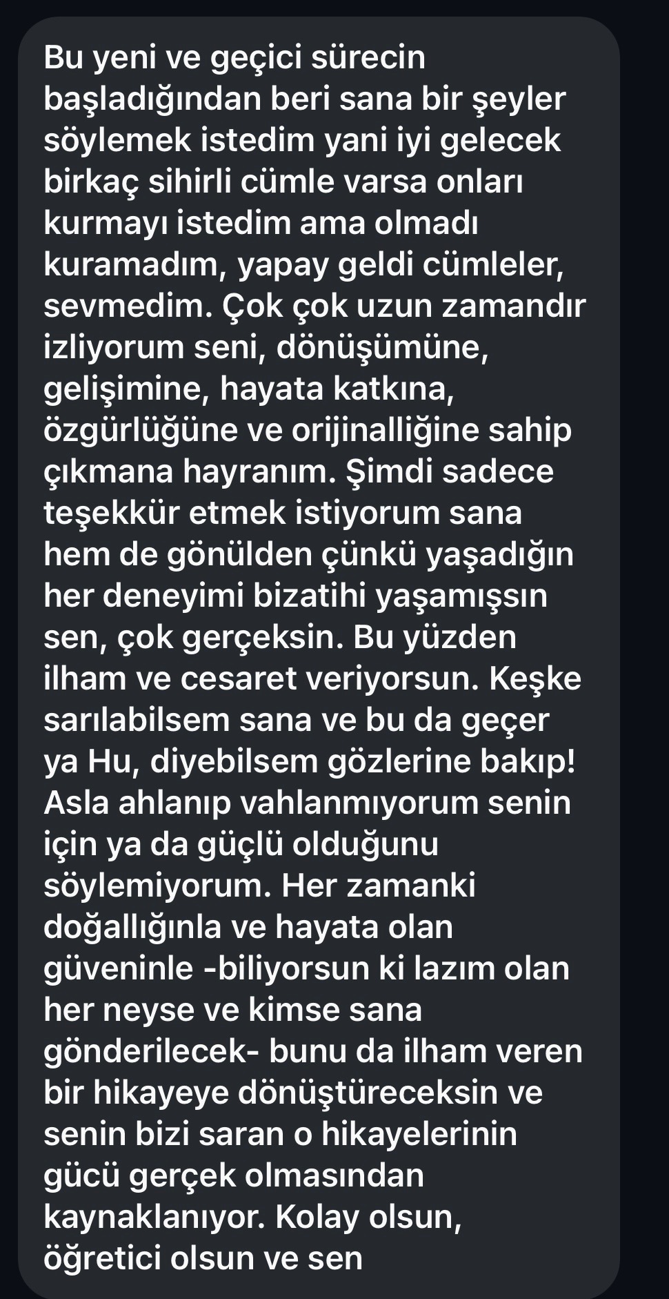 Şimdi geriye dönüp baktığımda şunu görüyorum: Belki de o üçüncü fazın başlangıcıydı. İspat etmeye çalışmadığım, mükemmel olmadığım, bedenimle savaşmamayı öğrendiğim, kendimle kavga etmediğim ve kimseye değil şov açıklama dahi yapmaya ihtiyaç duymadığım bir faz.